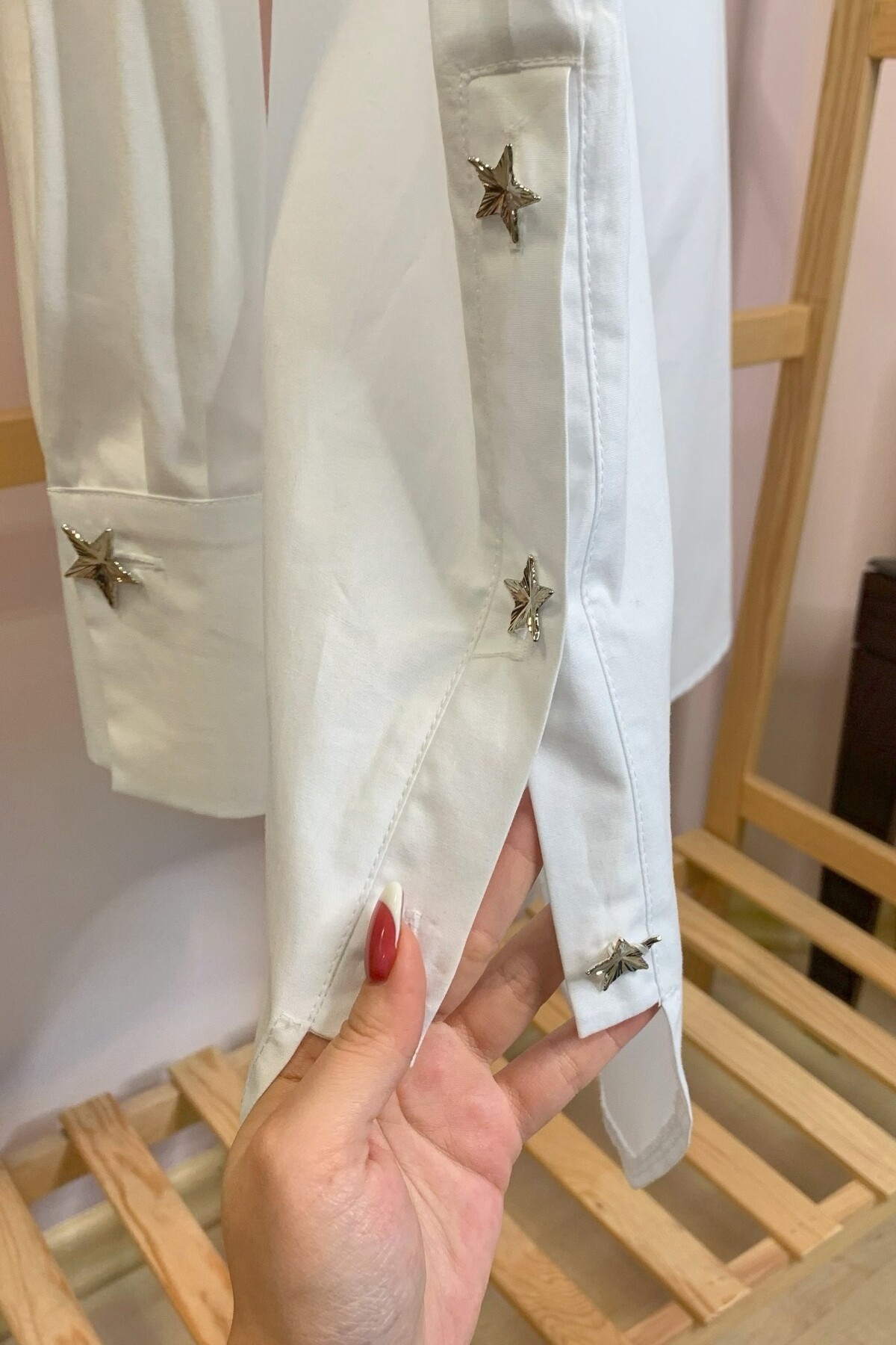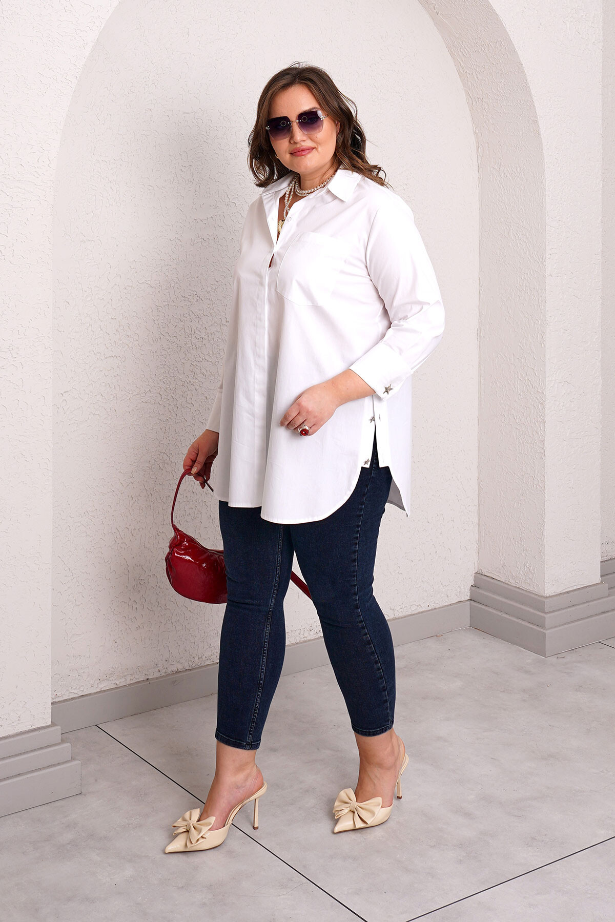 Plus size poplin shirt with long sleeves and thick cuffs detailed with accessory buttons.