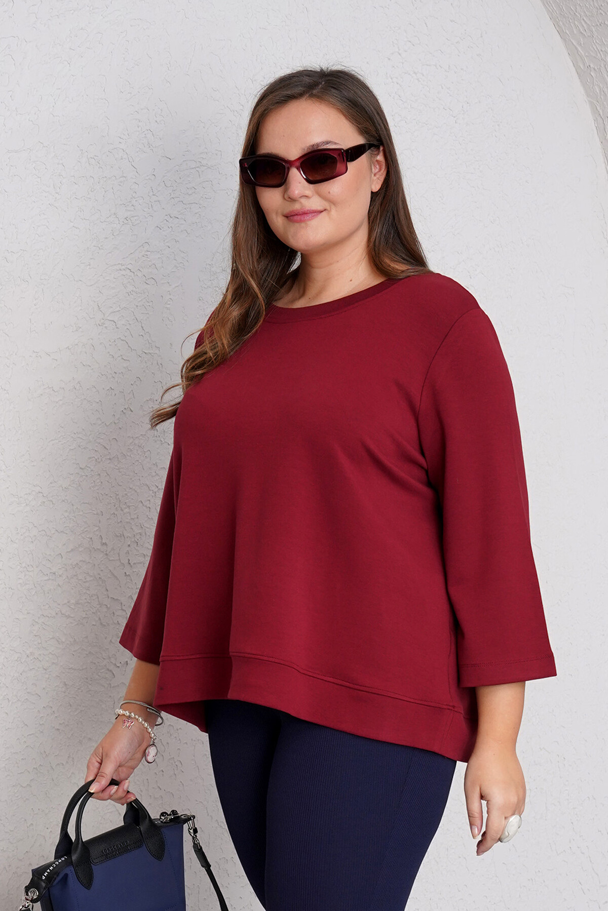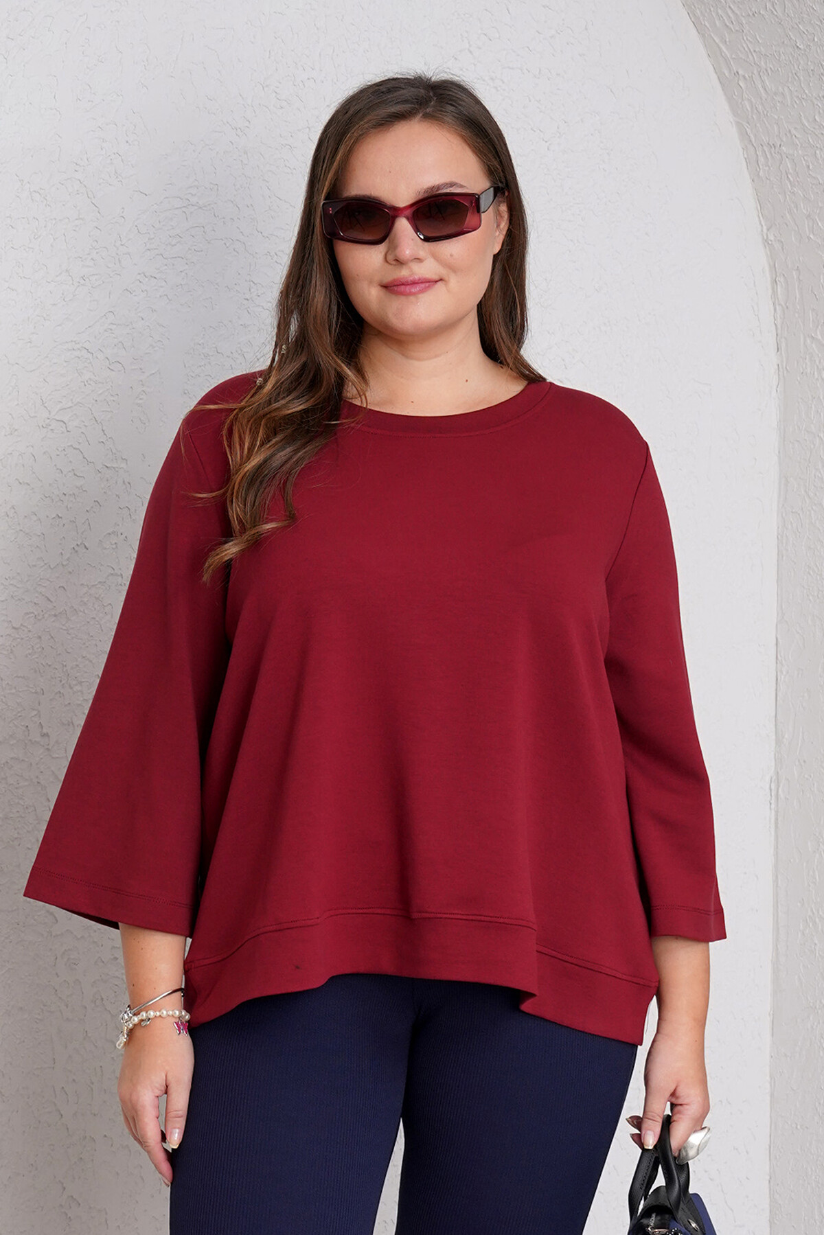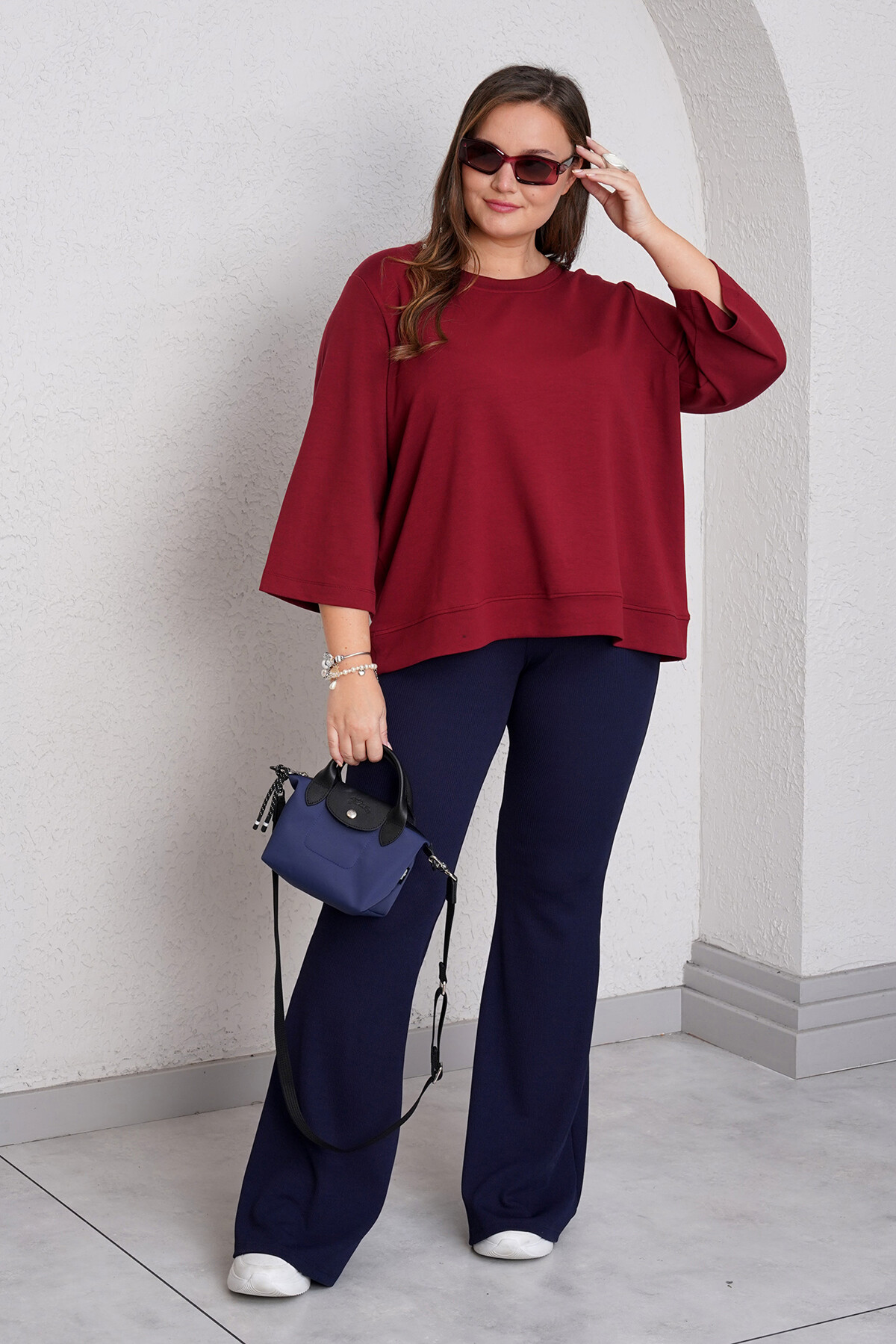 Büyük beden dirsekte duble dikişli, kısa kollu sweatshirt.