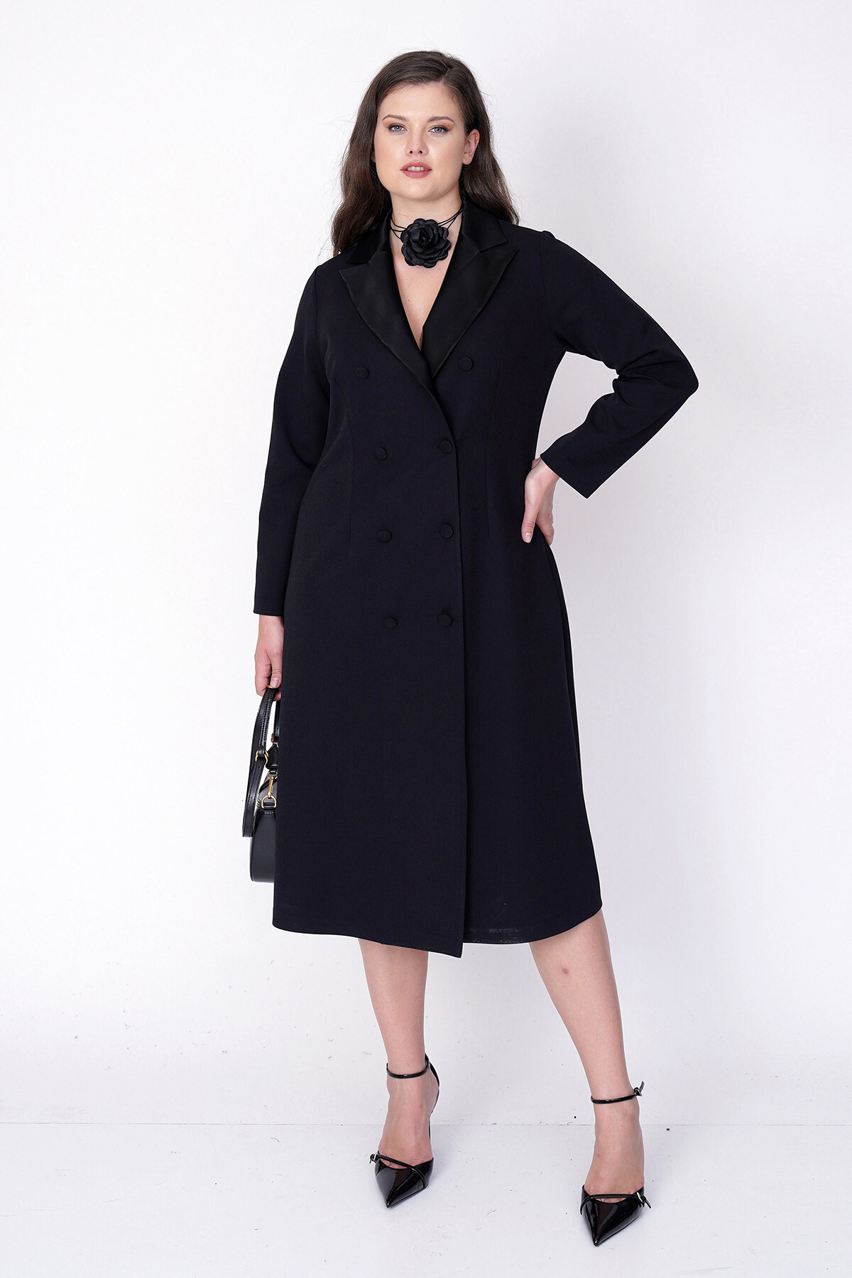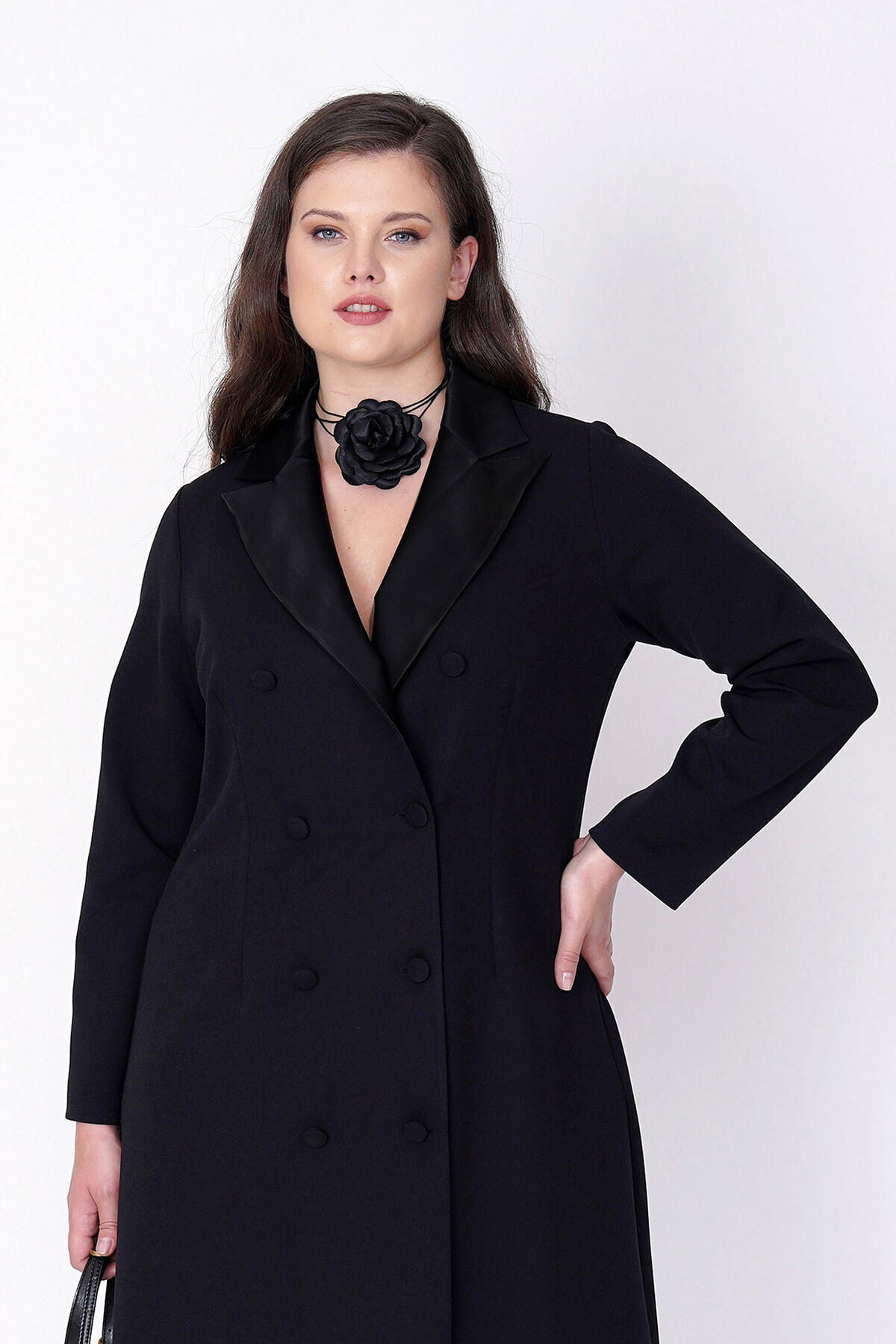 Plus size double-breasted blazer dress made of stretch jacket fabric.