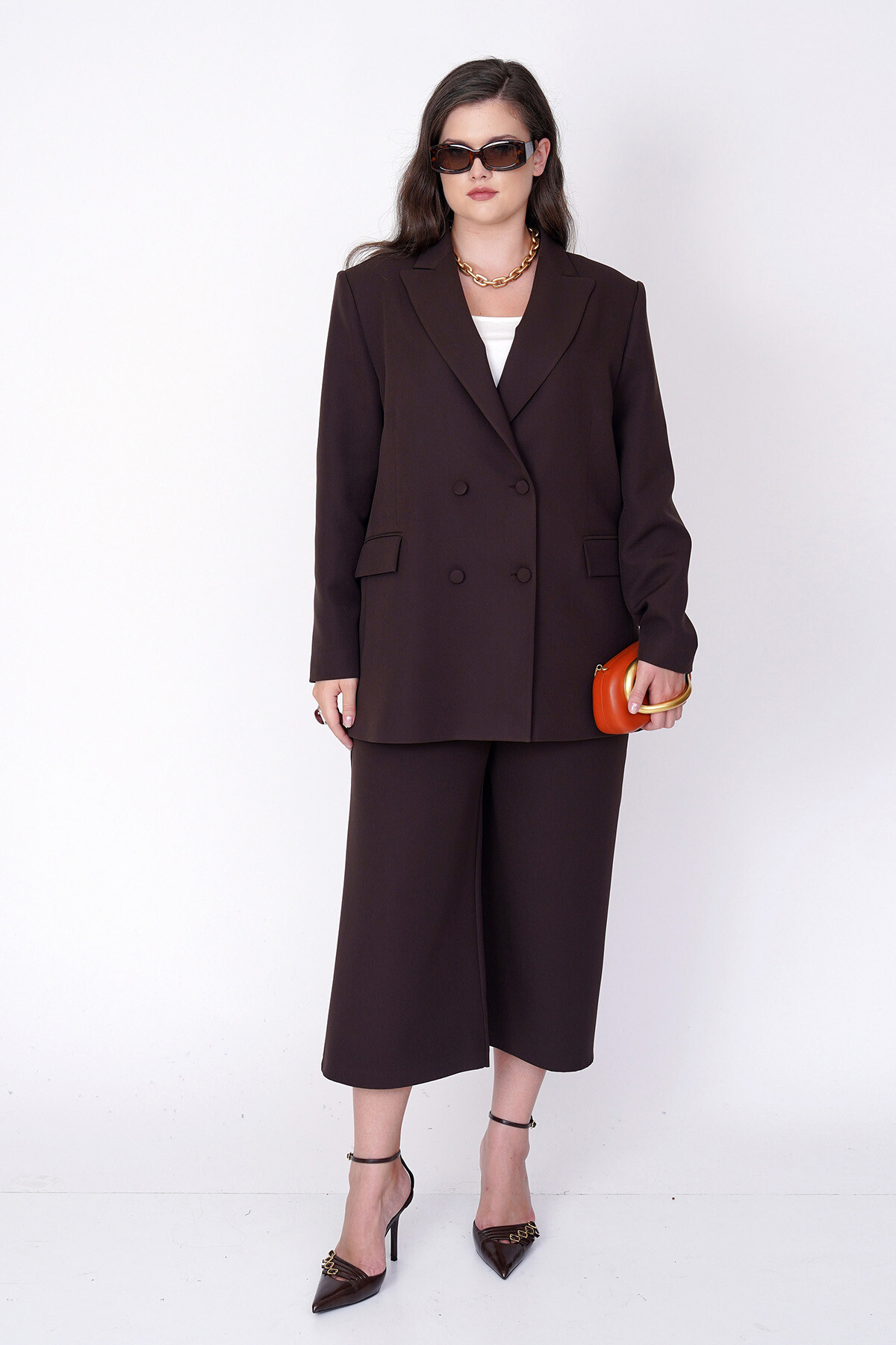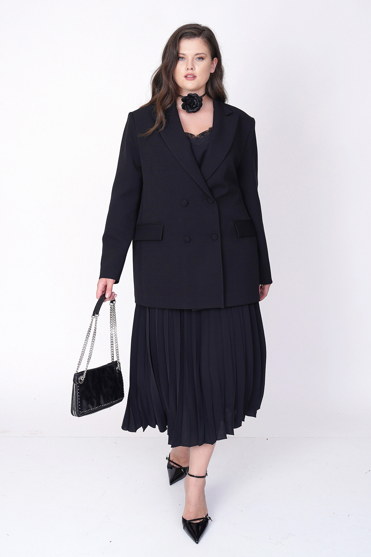 Büyük beden içi astarlı, düğmeli blazer ceket.