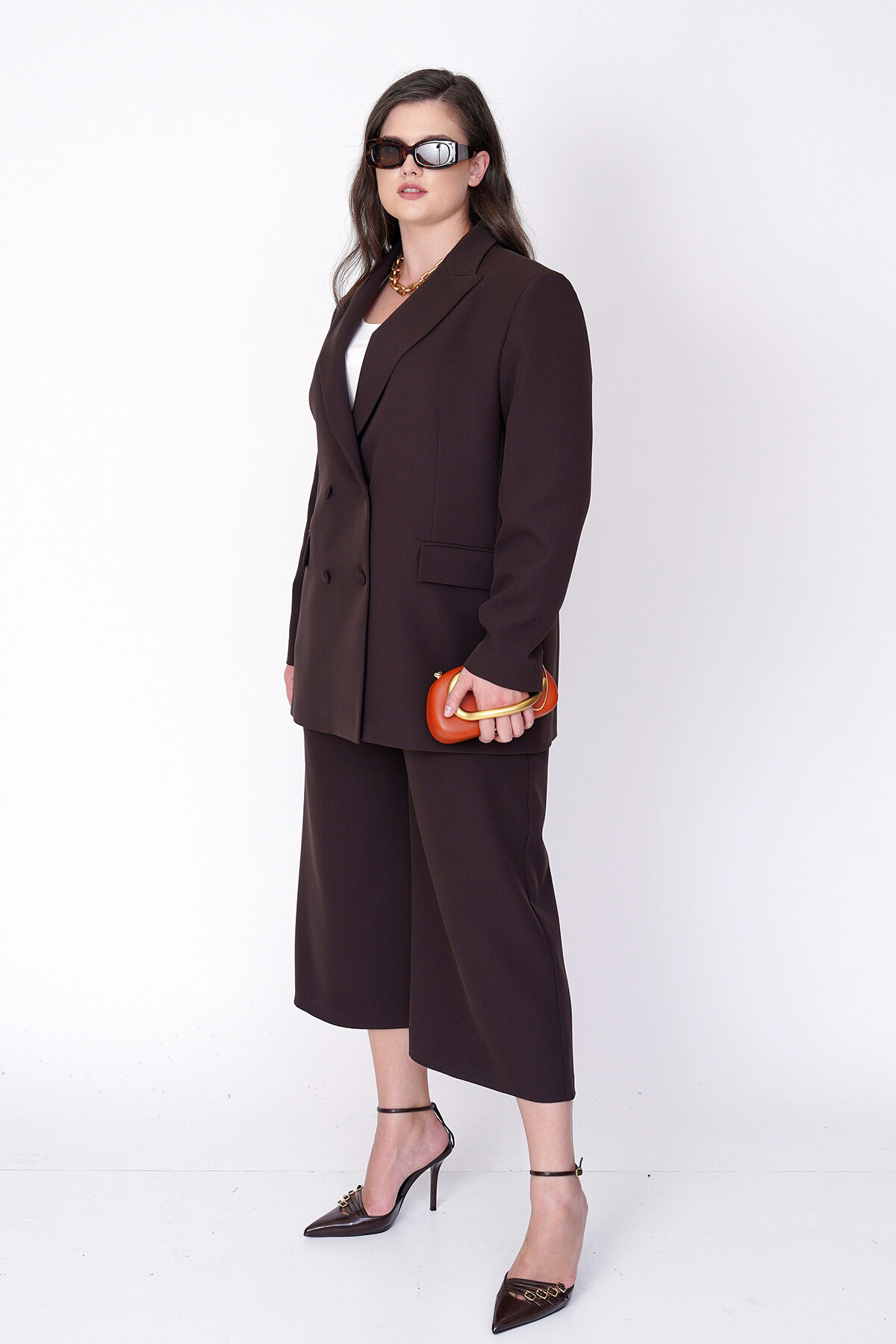 Kruvaze çift düğme detaylı, uzun kolludur.