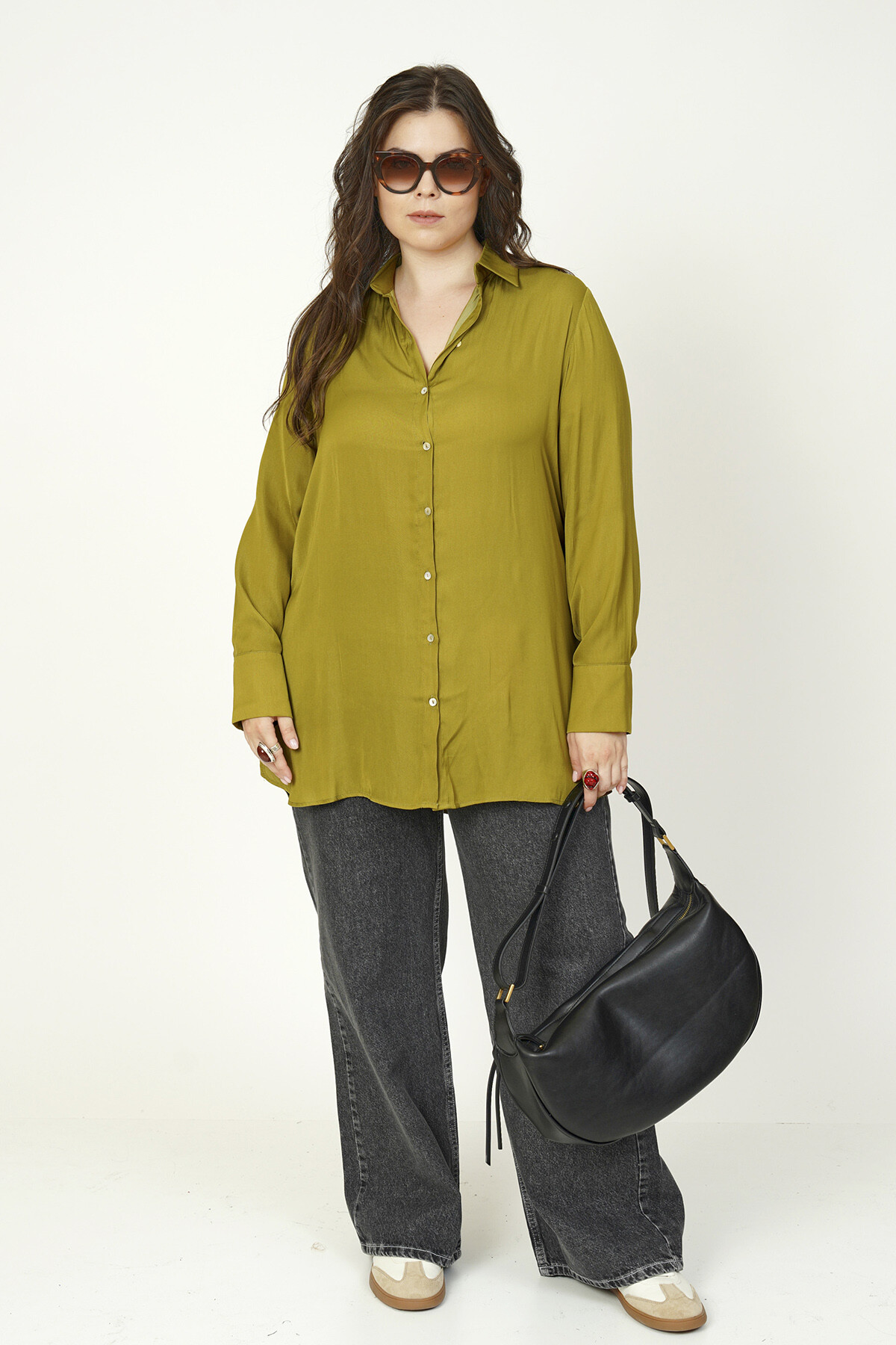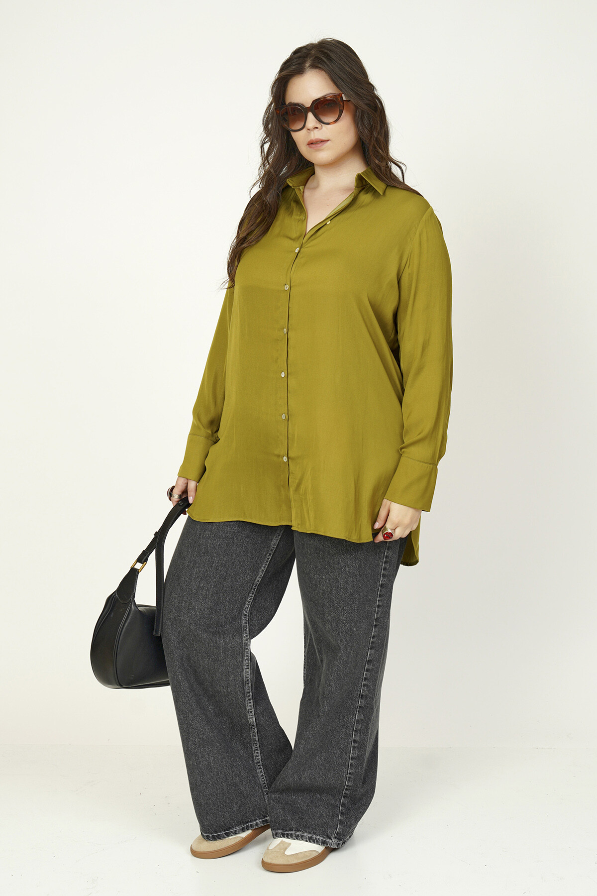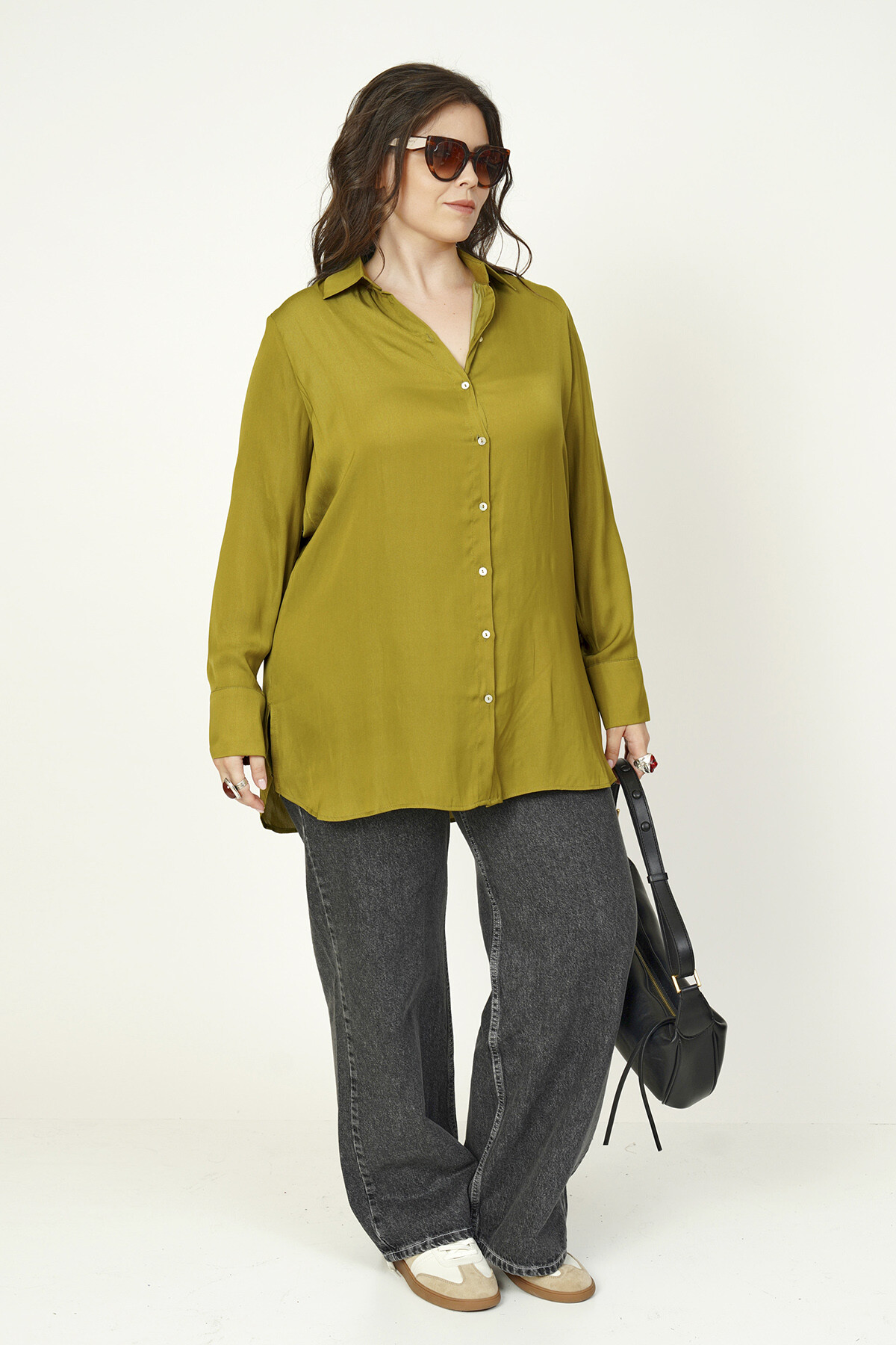 Büyük beden basic saten gömlek.
