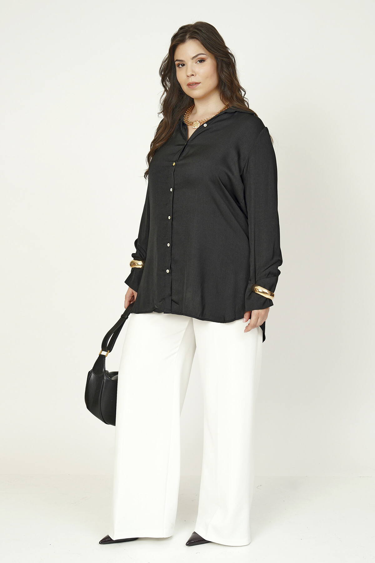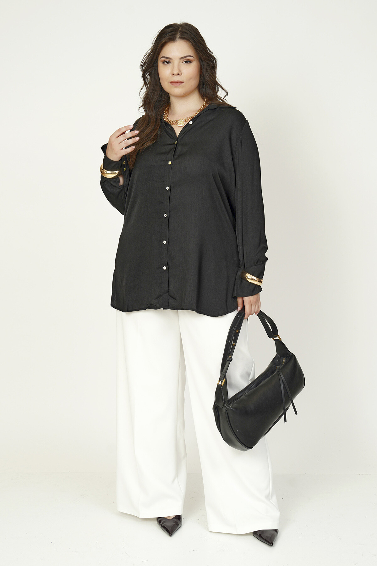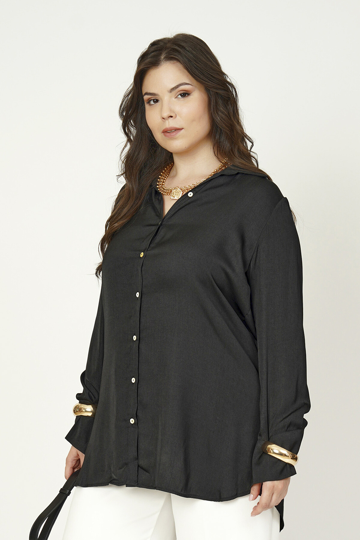 Büyük beden basic saten gömlek.