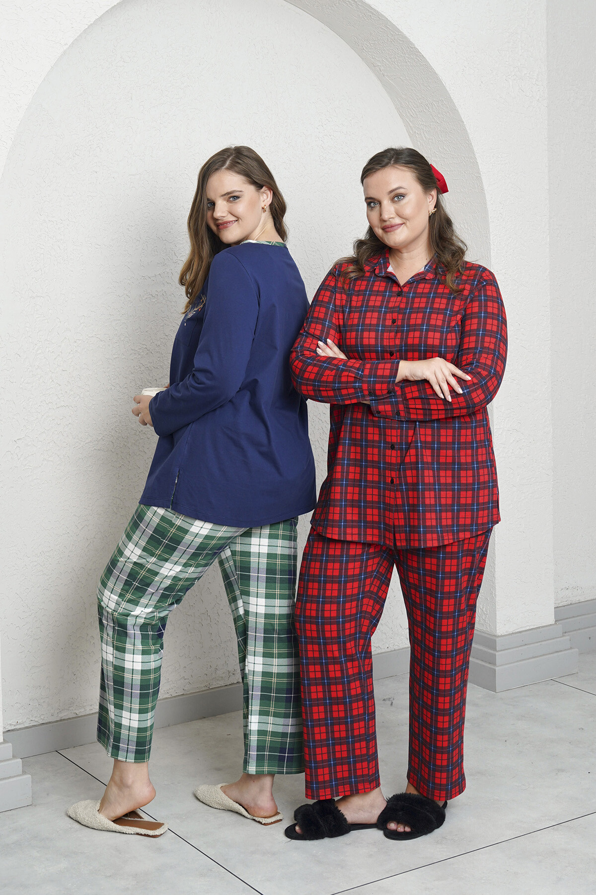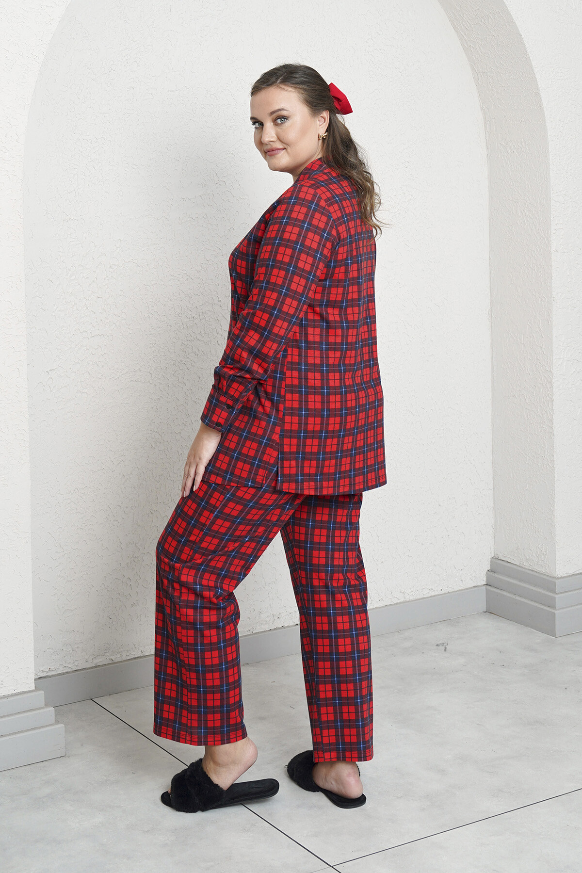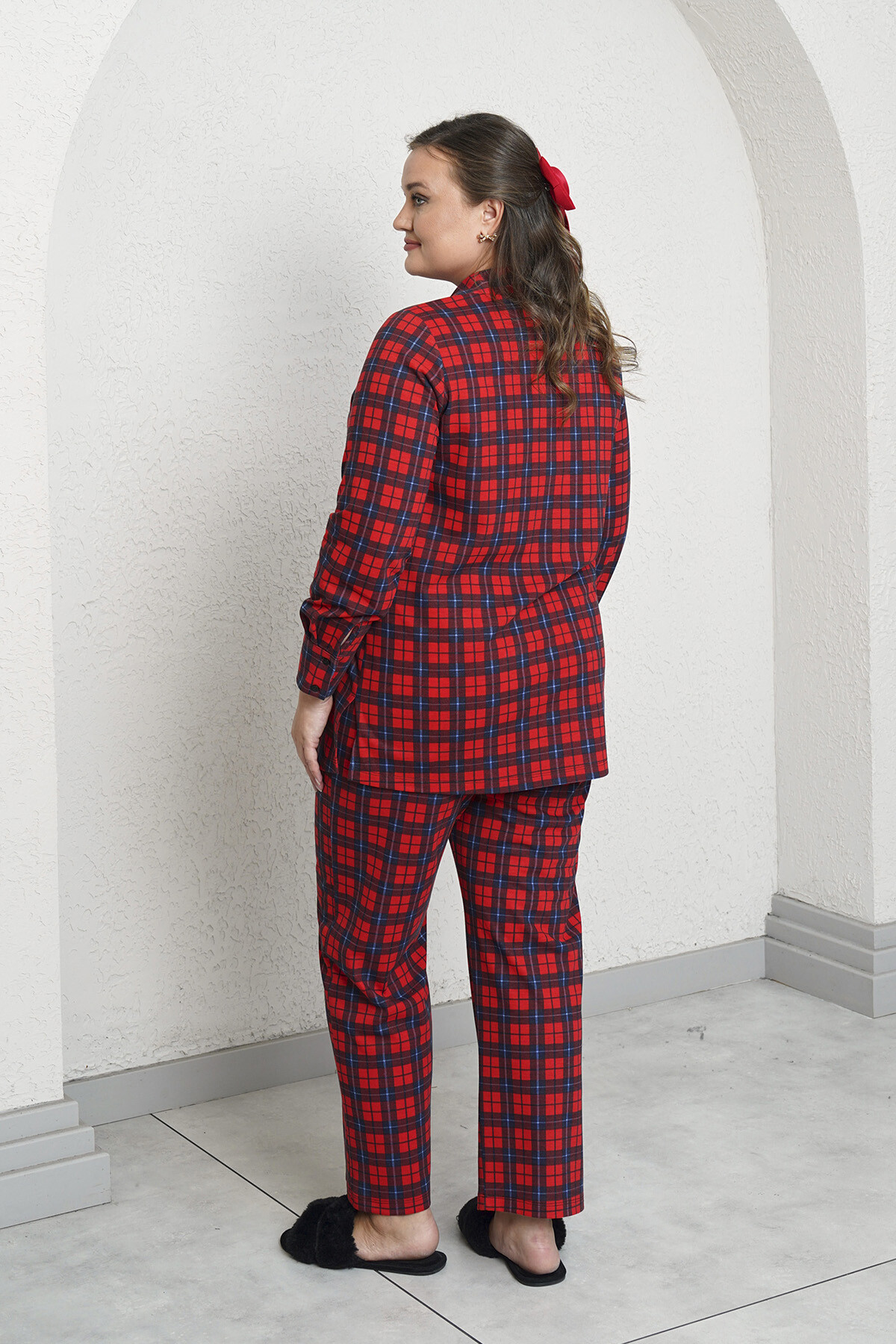 Büyük beden ekose desenli pamuklu kumaştan, gömlek ve pantolon set. (2 ürün)