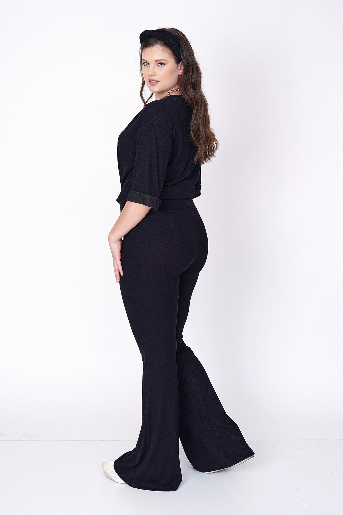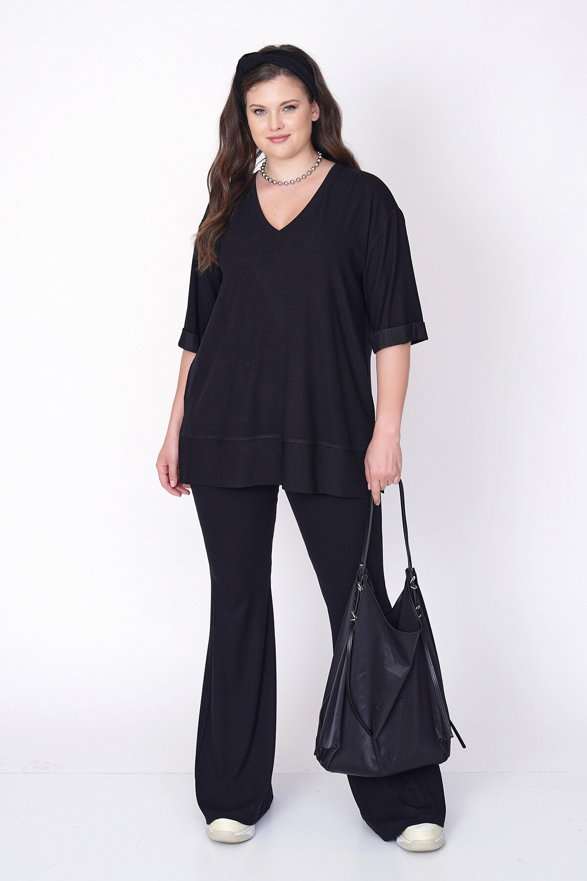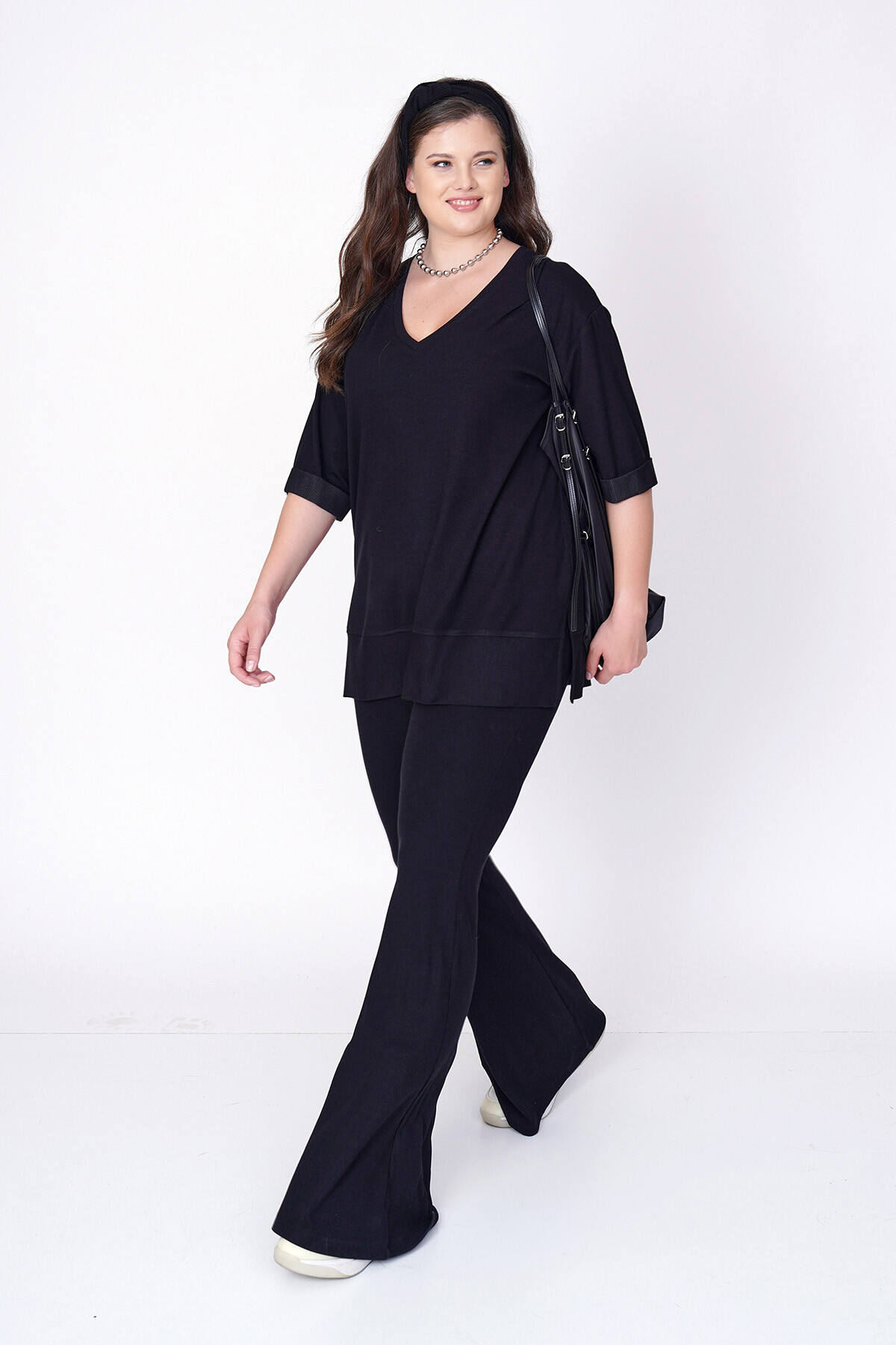 Büyük beden fitilli kaşkorse esnek kumaştan, tişört ve tayt takım, set. (2 ürün)