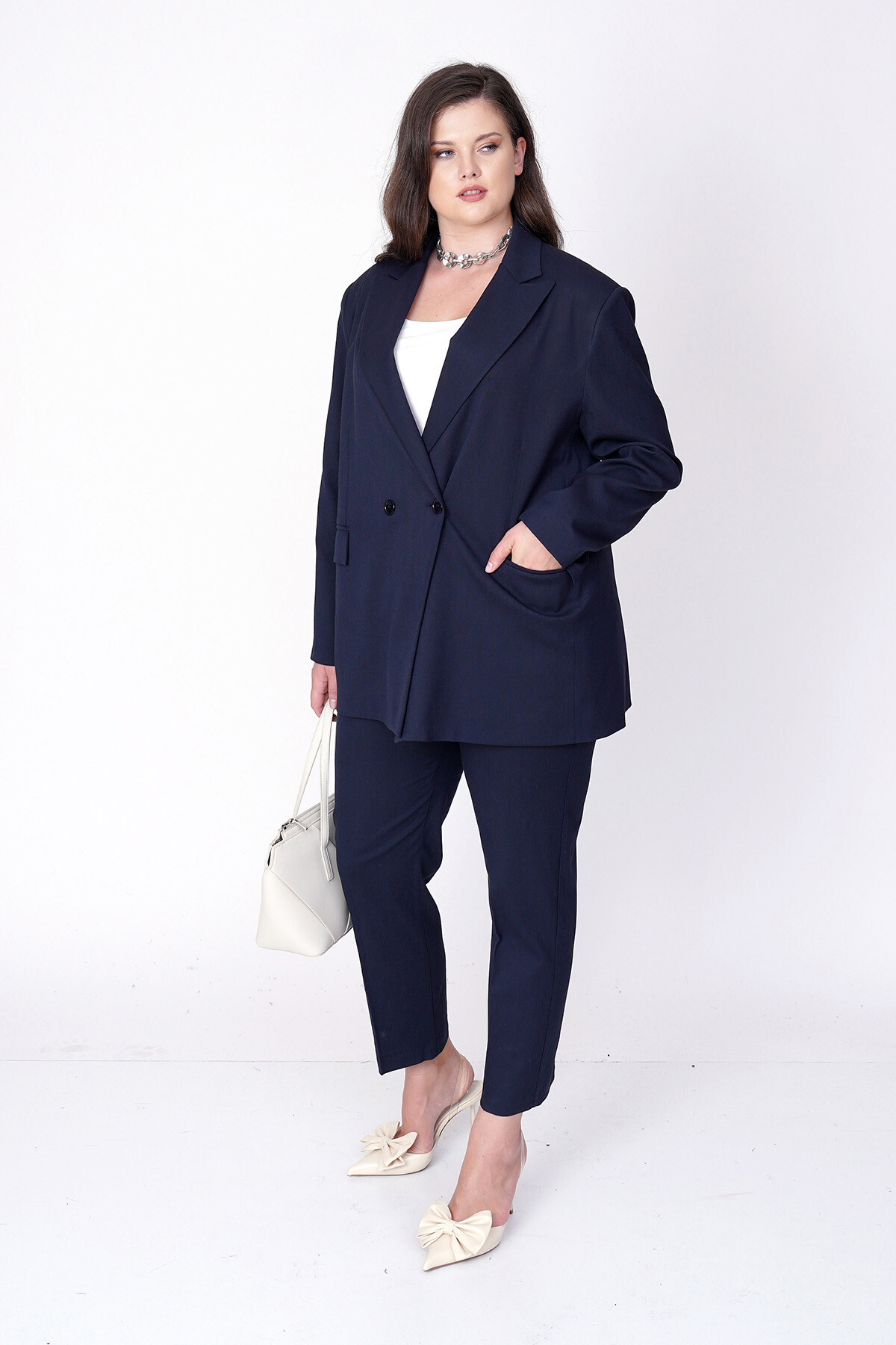 Büyük beden içi astarlı, düğmeli kalın blazer ceket.