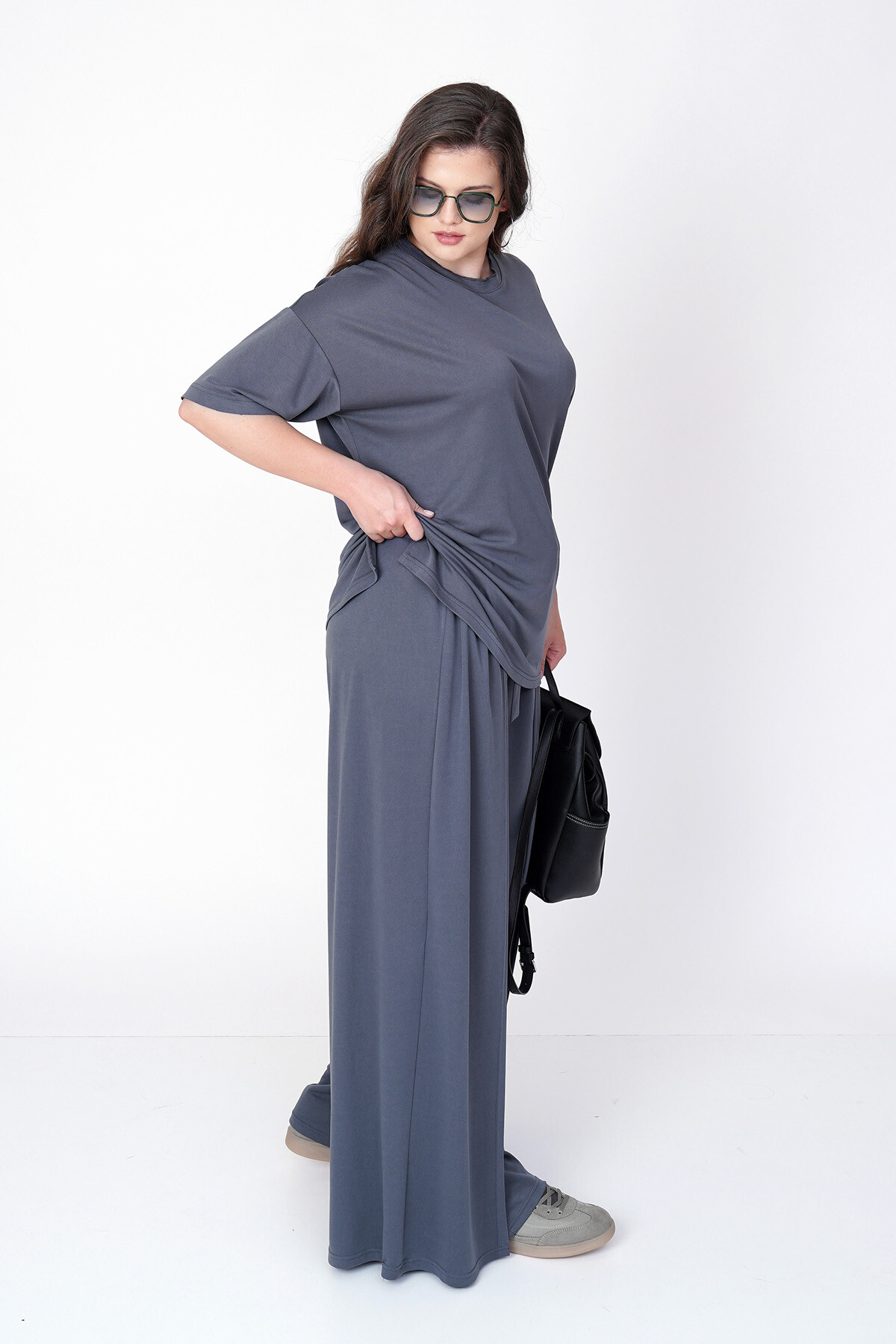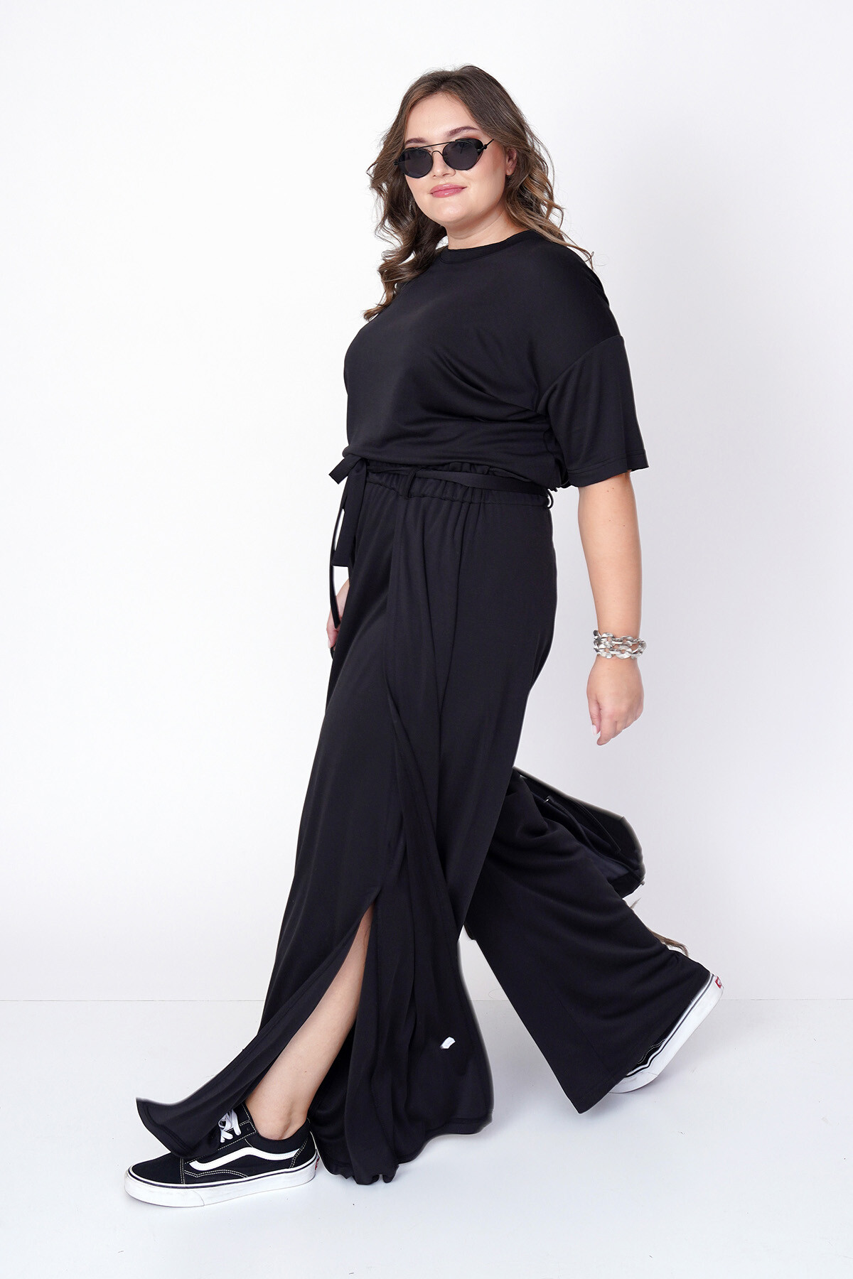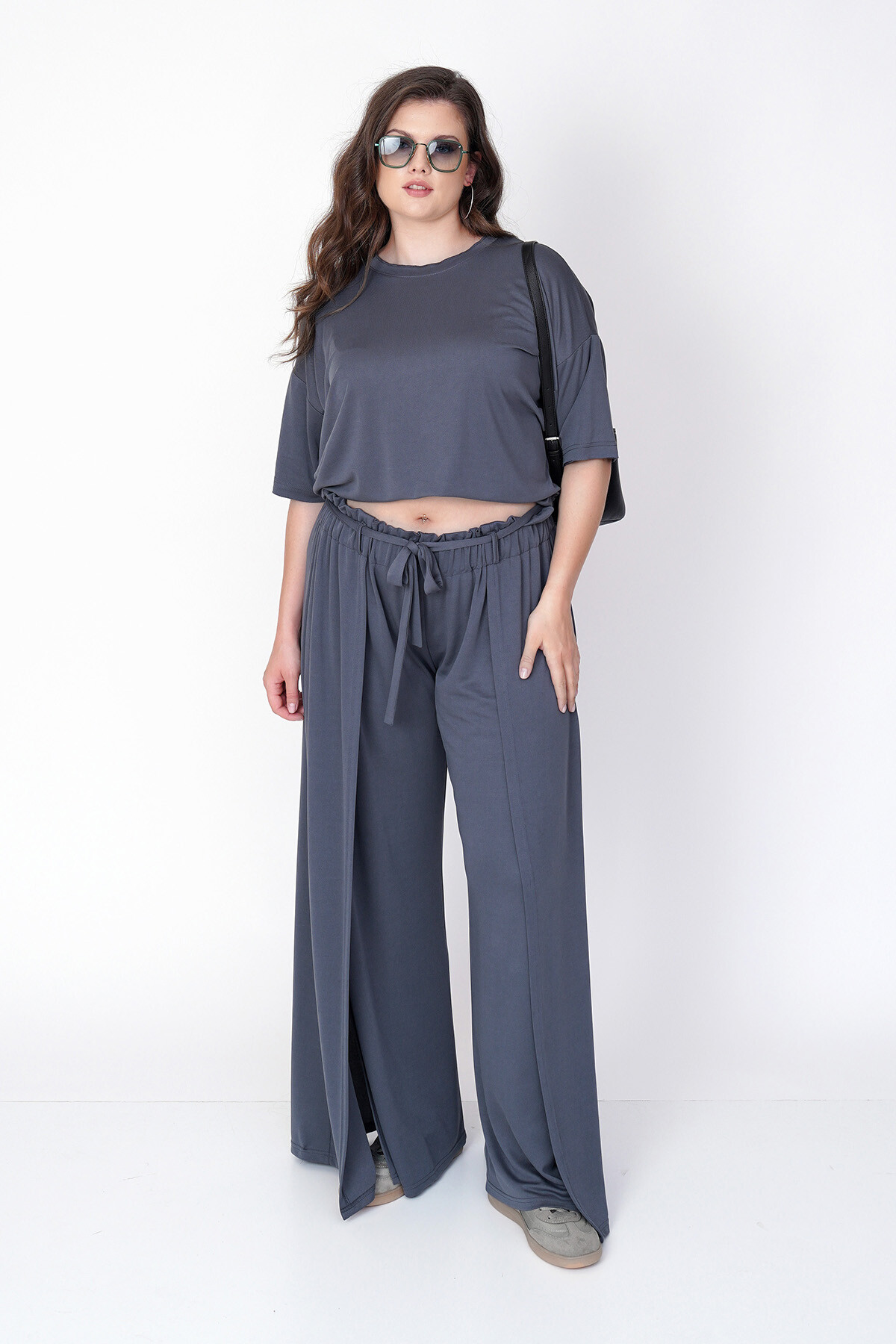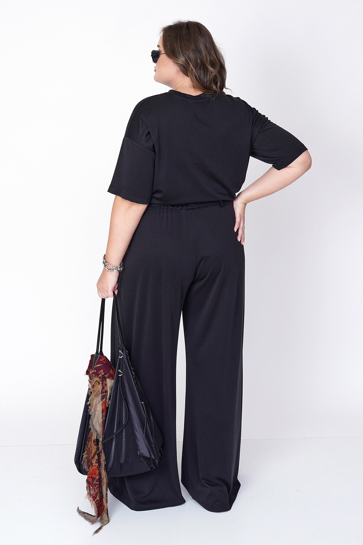 Büyük beden dökümlü modal kumaştan üretilmiş pantolon.