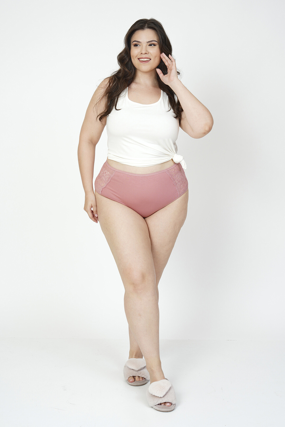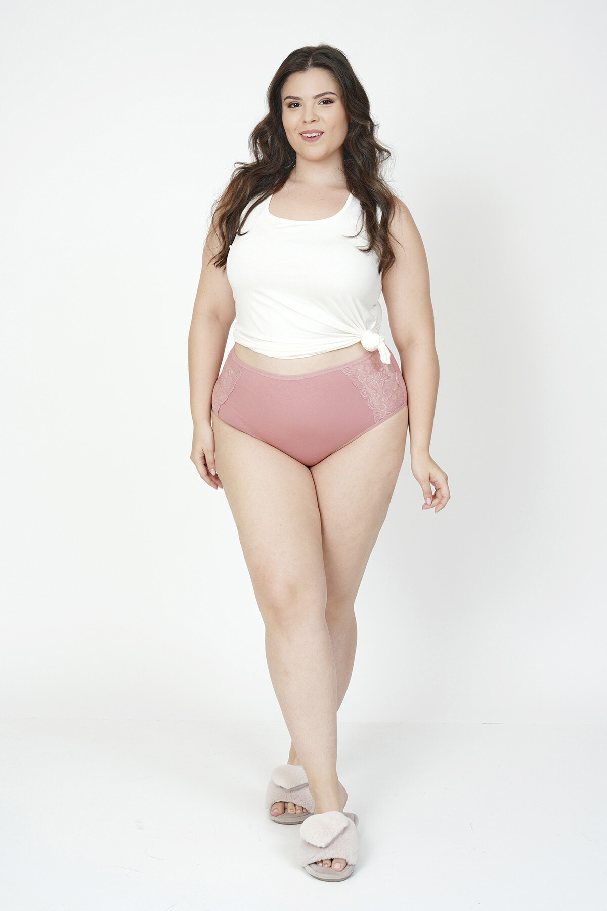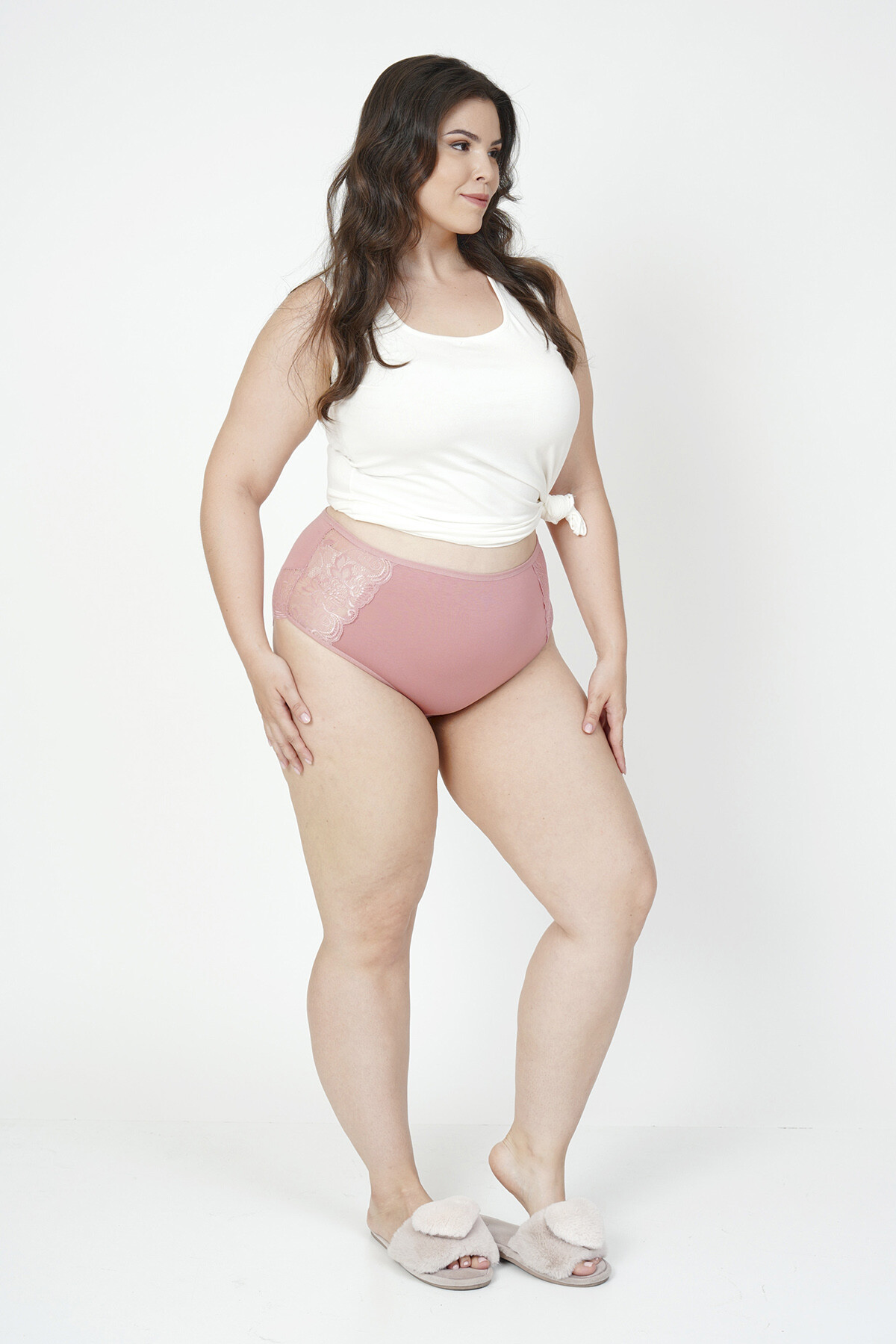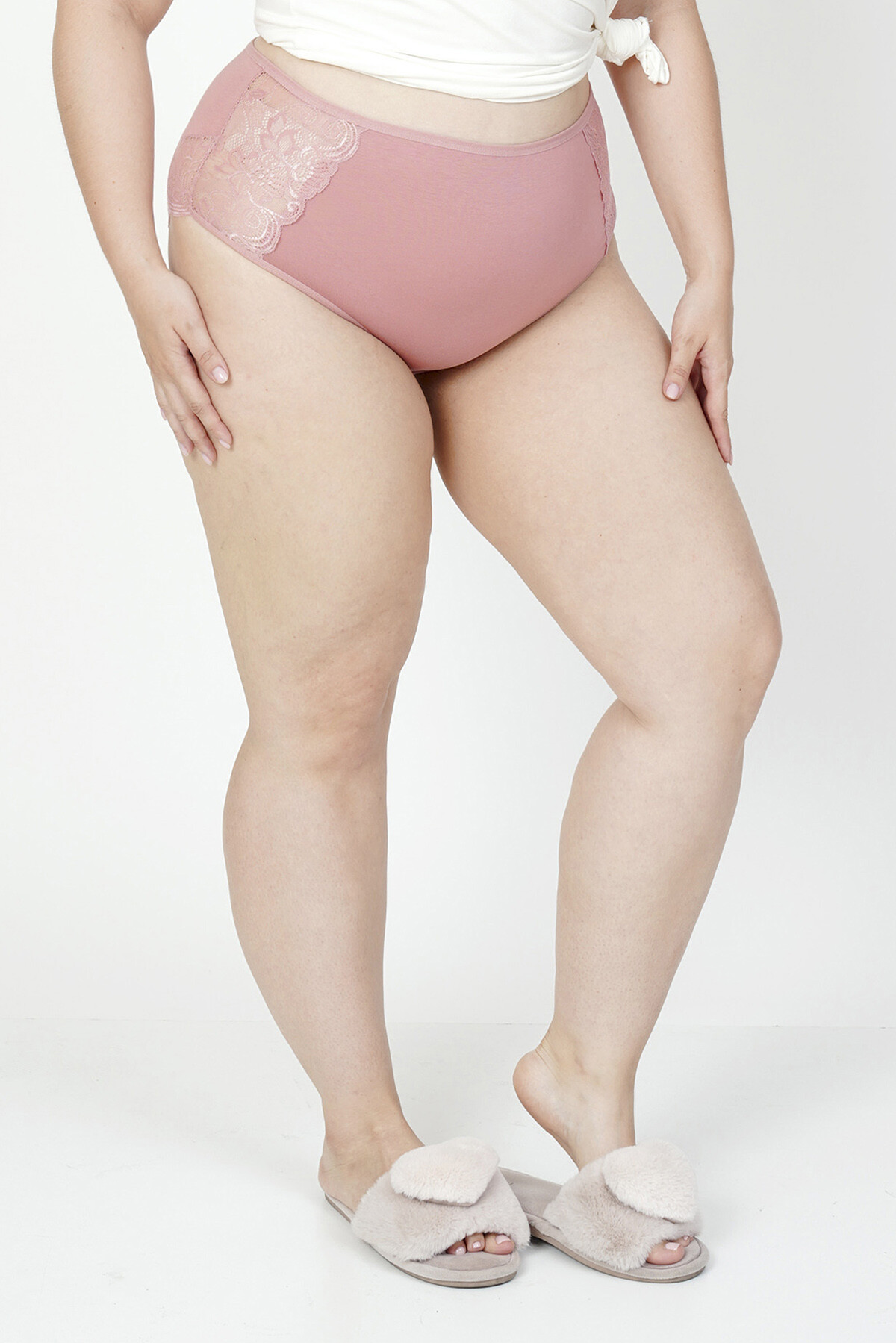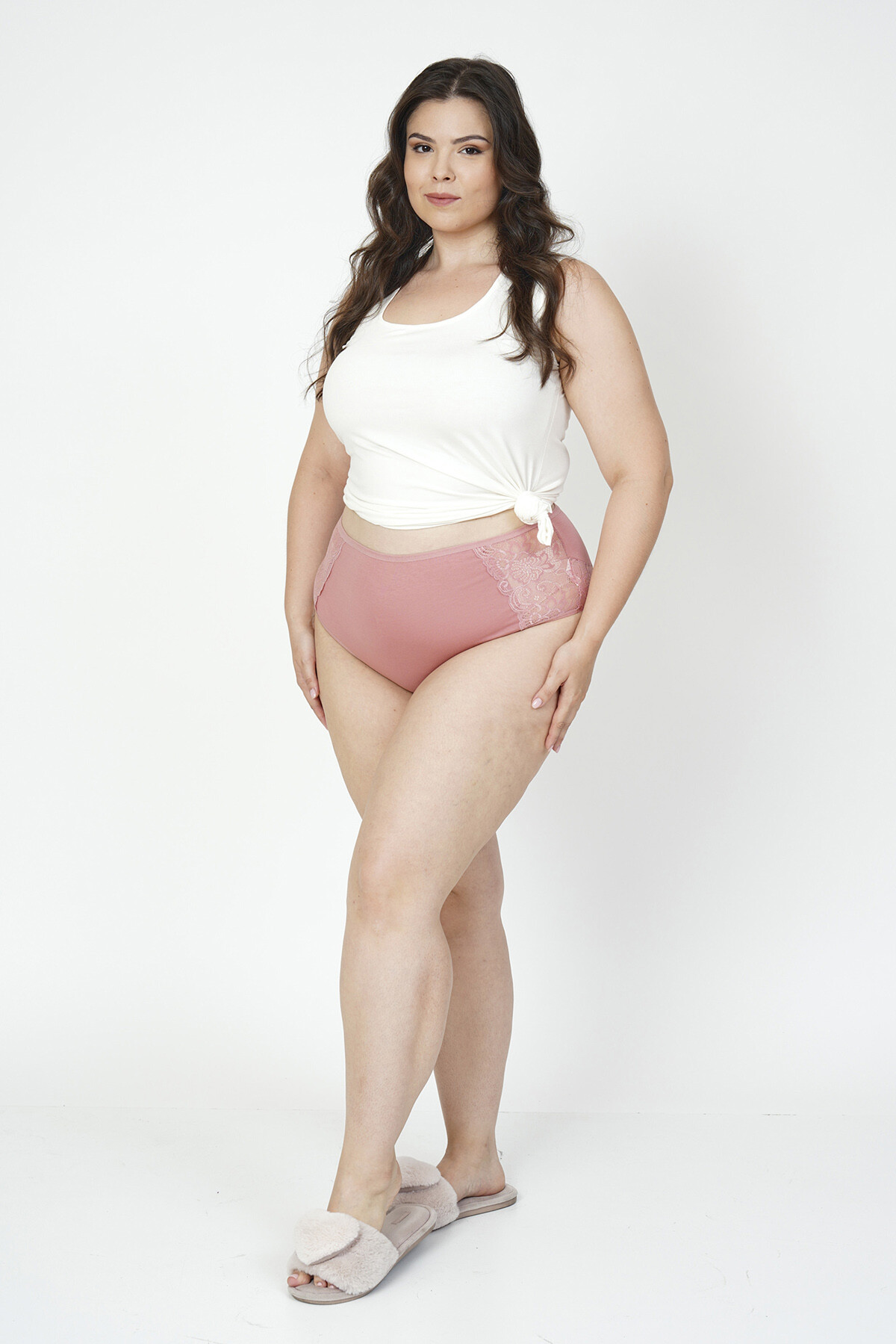 Büyük beden, ön ve arka dantel detaylı yüksek bel pamuklu külot.