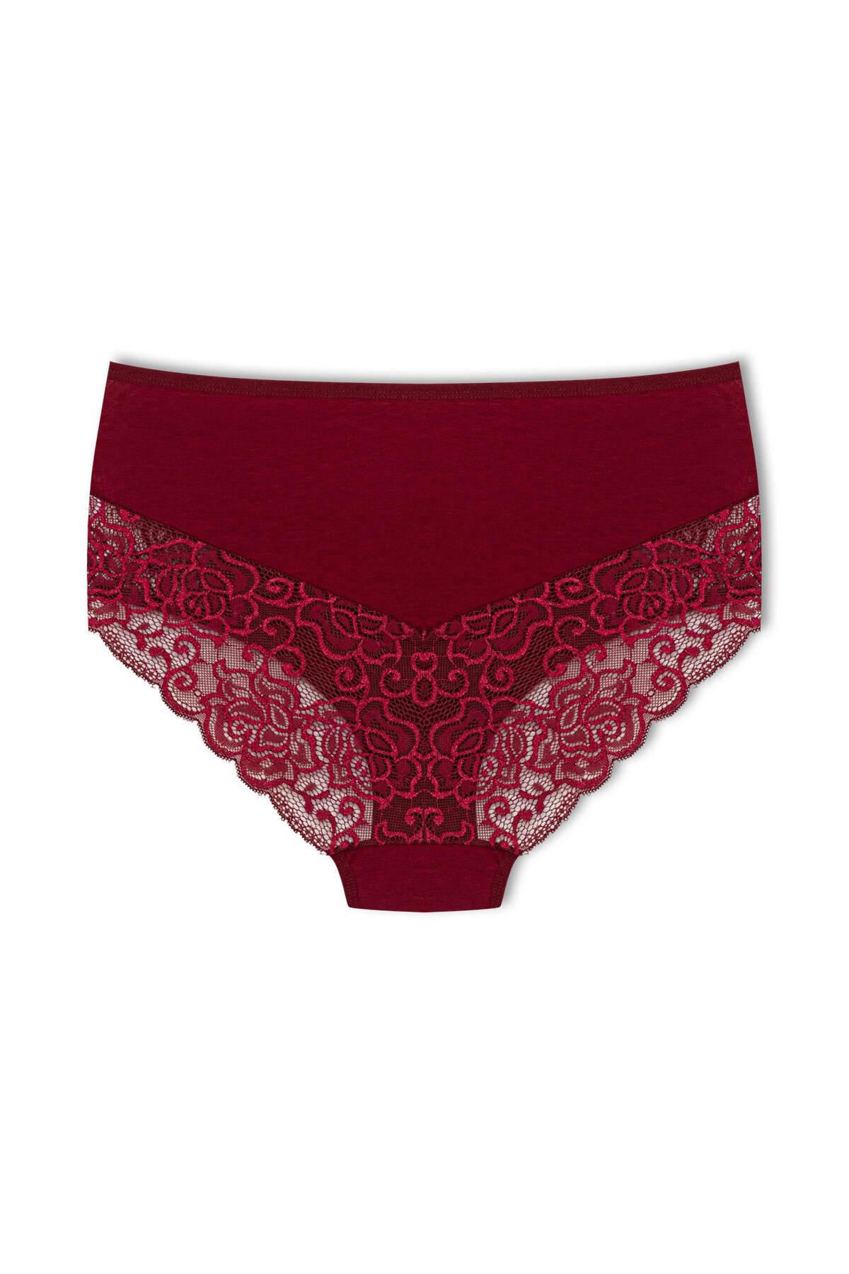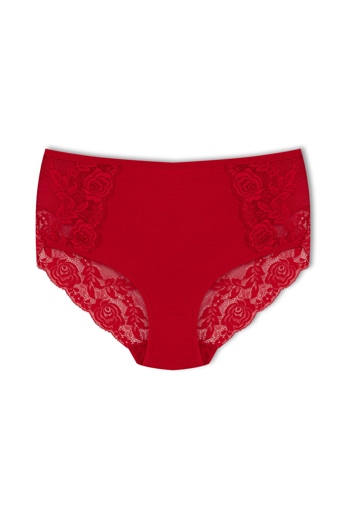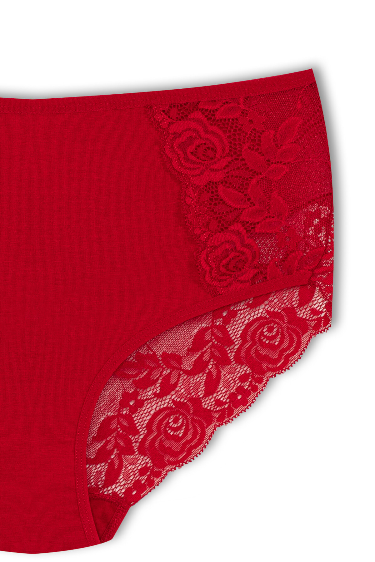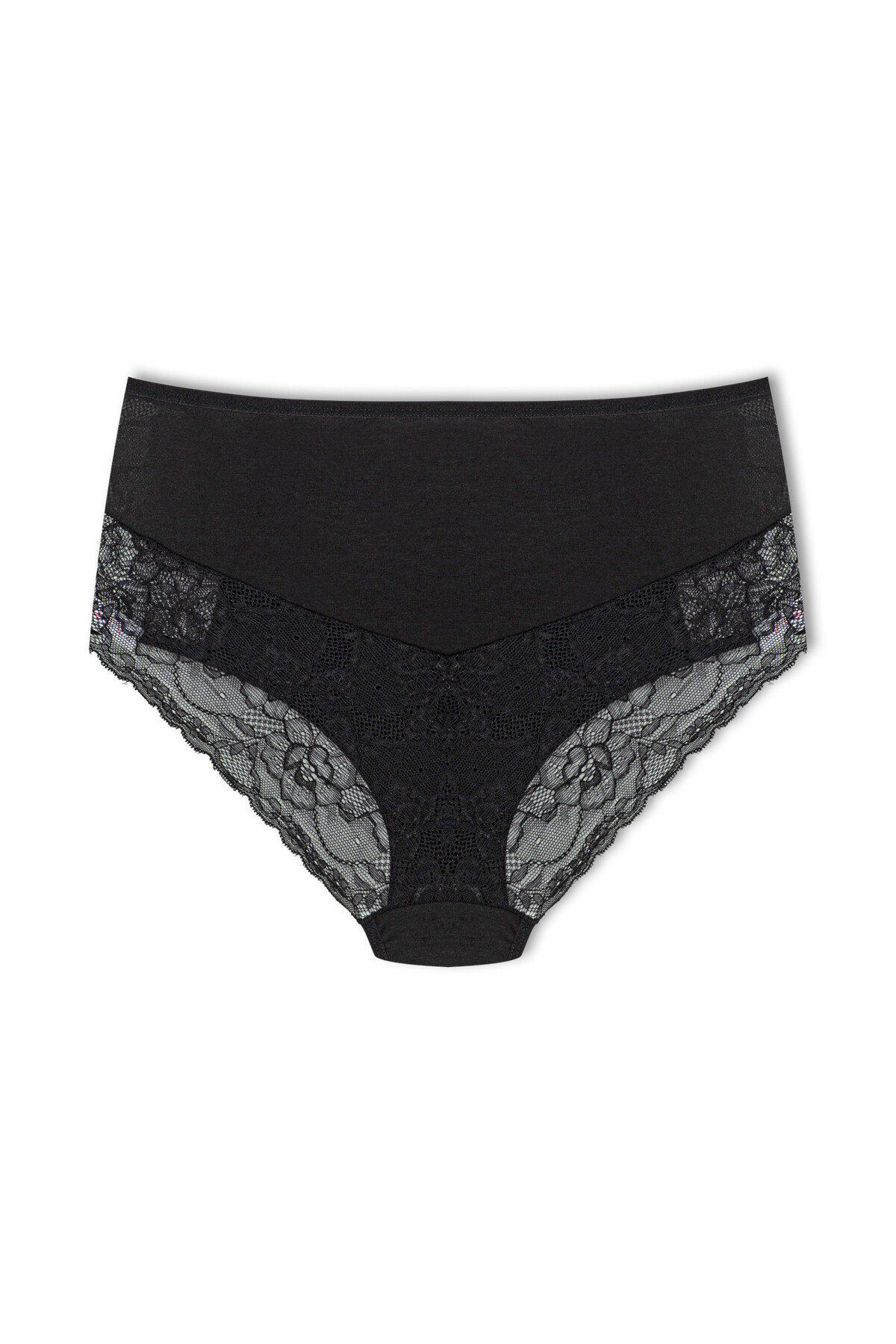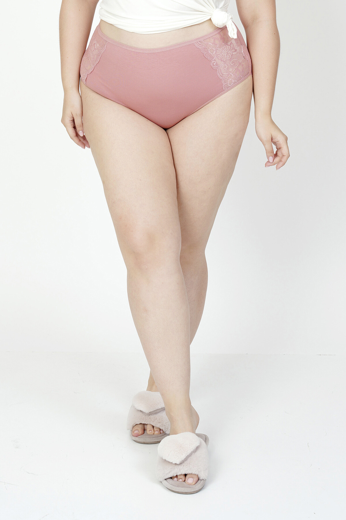 Büyük beden, ön ve arka dantel detaylı yüksek bel pamuklu külot.