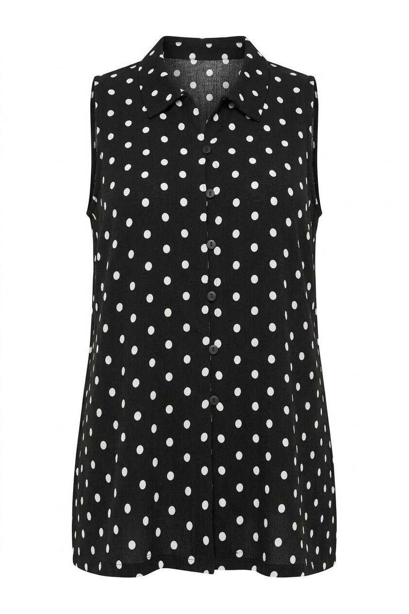 Büyük beden puantiyeli, kolsuz gömlek.