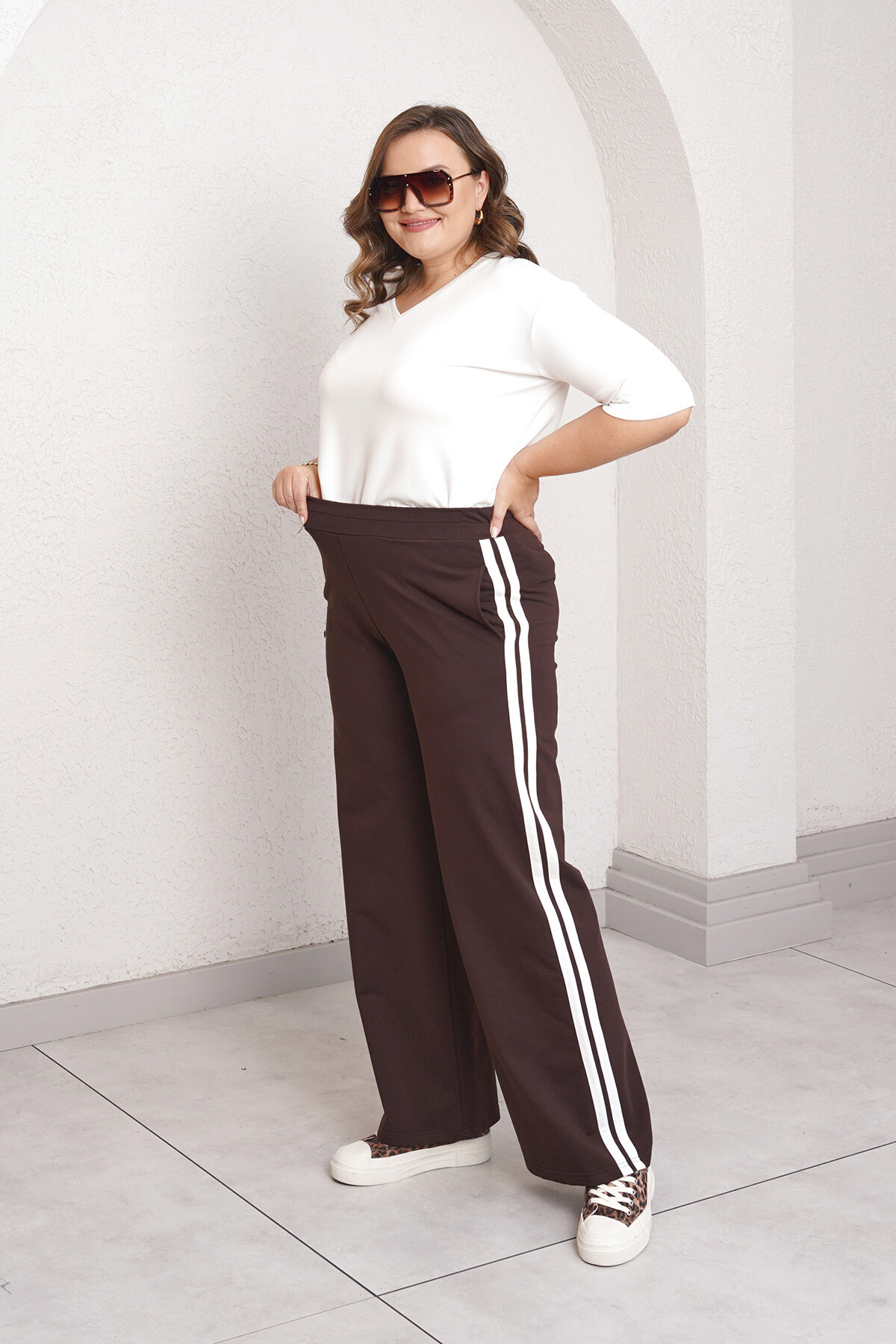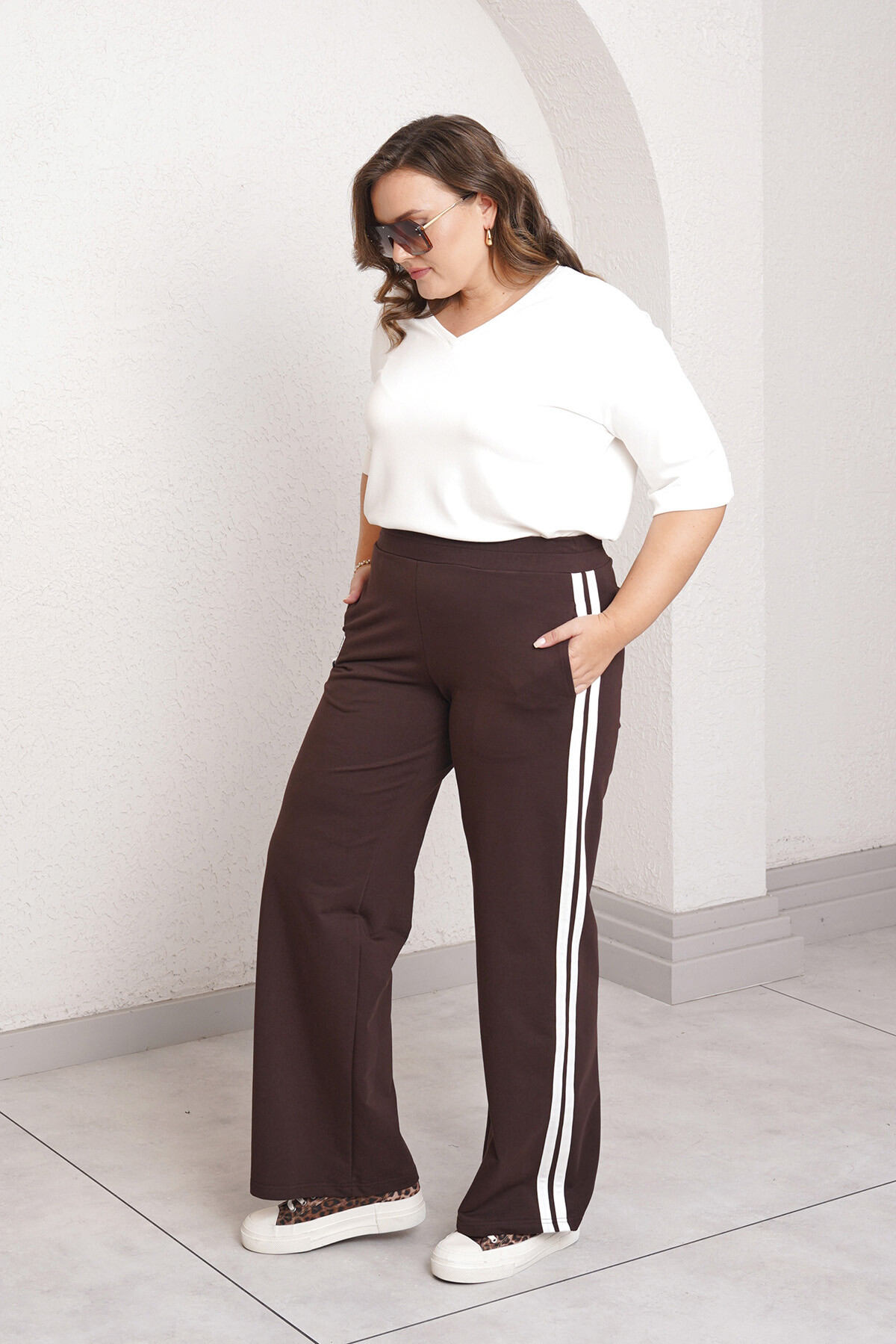 Büyük beden yan şerit detaylı, beli lastikli eşofman altı.