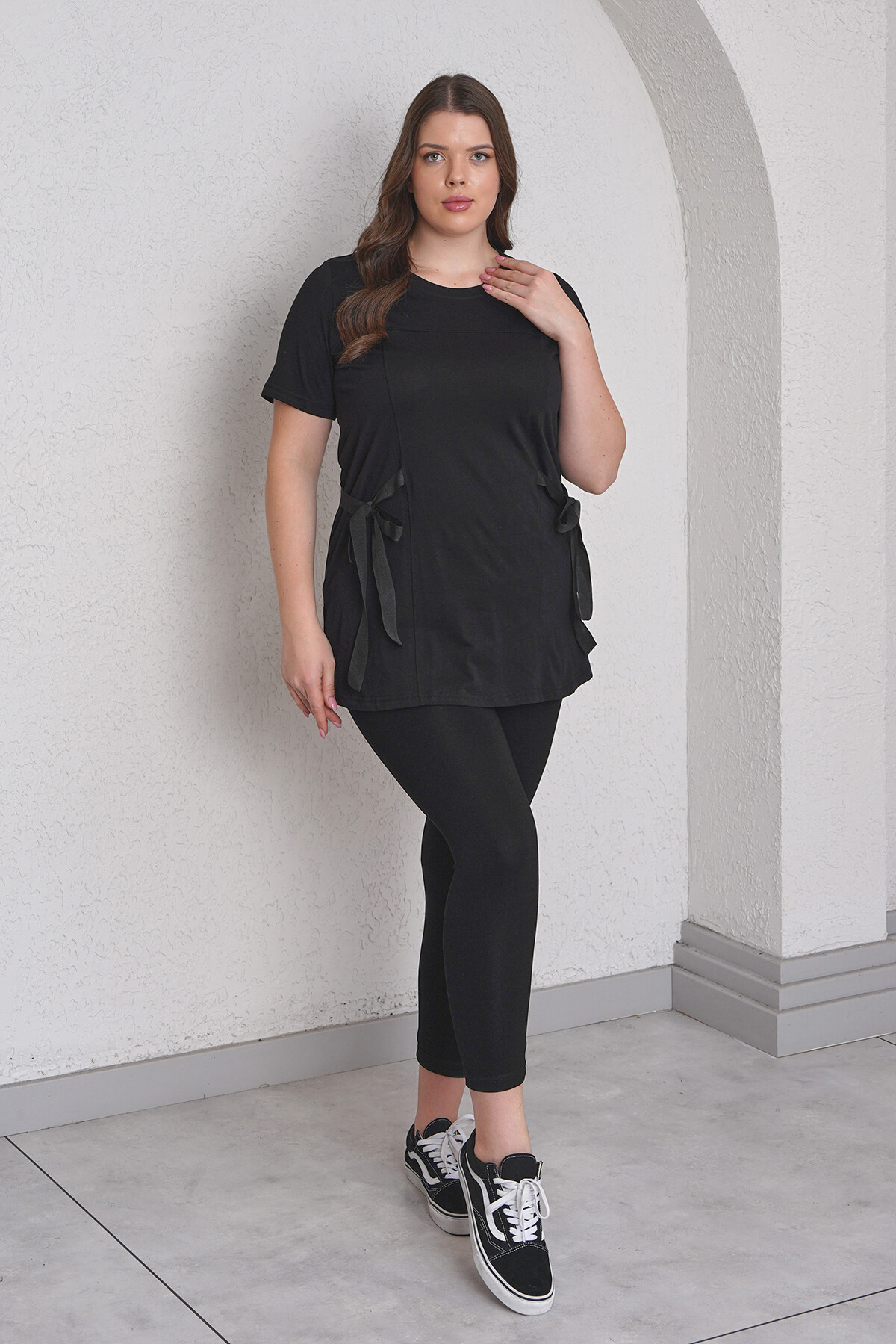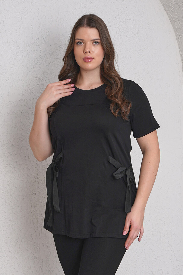 Büyük beden yanlardan fiyonk detaylı %100 esnek premium pamuk tişört.