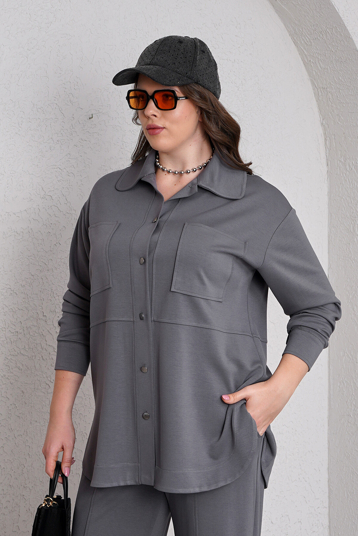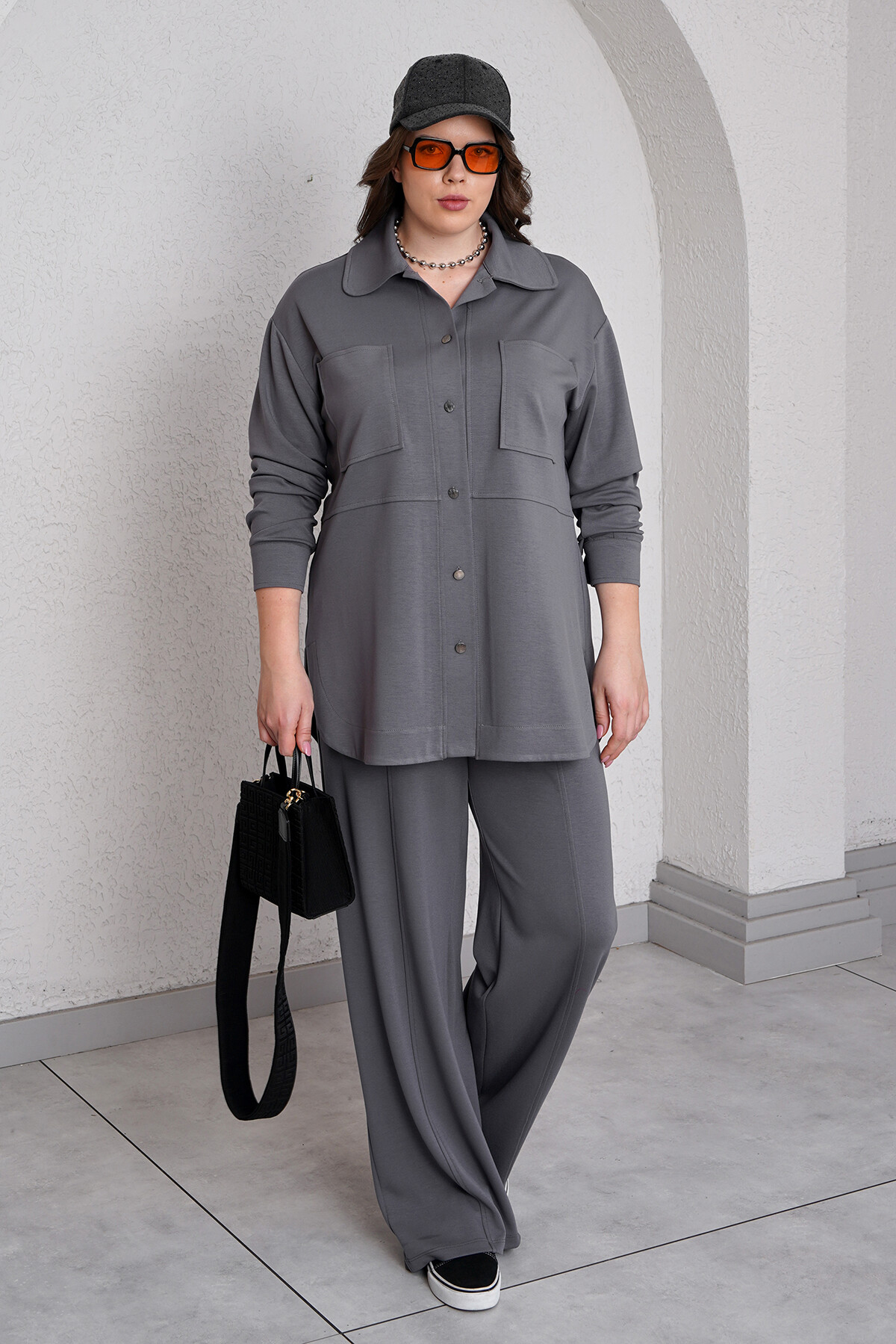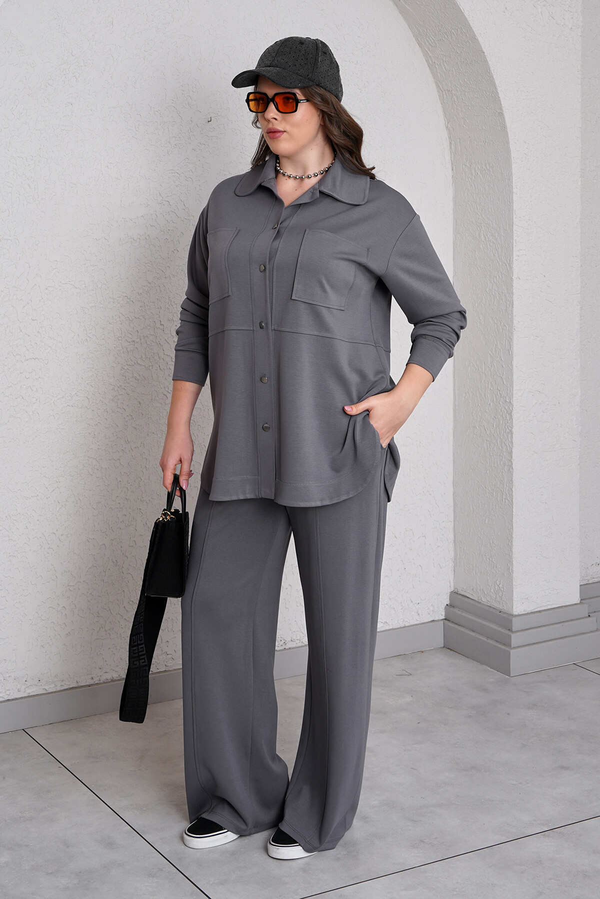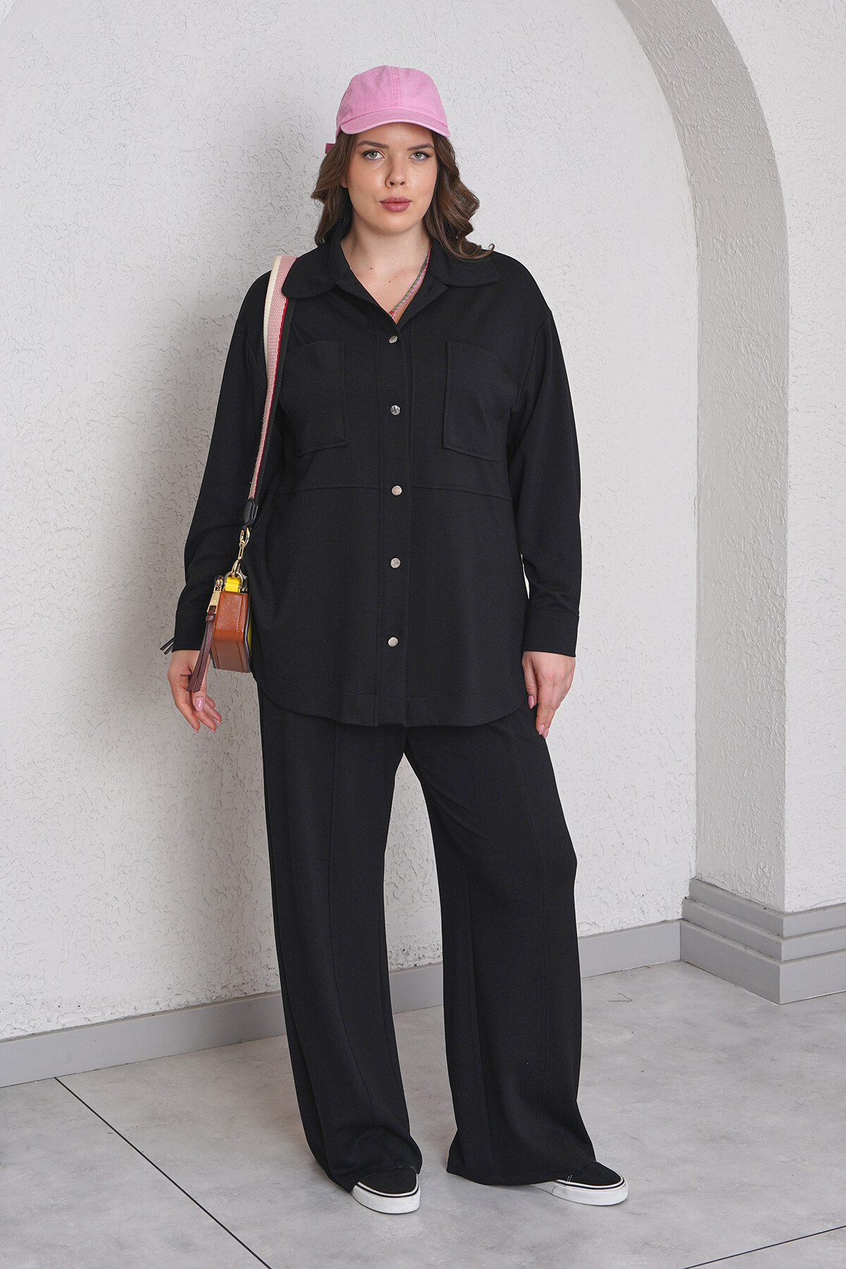 Büyük beden modal kumaştan, gömlek ve pantolon takım, set.