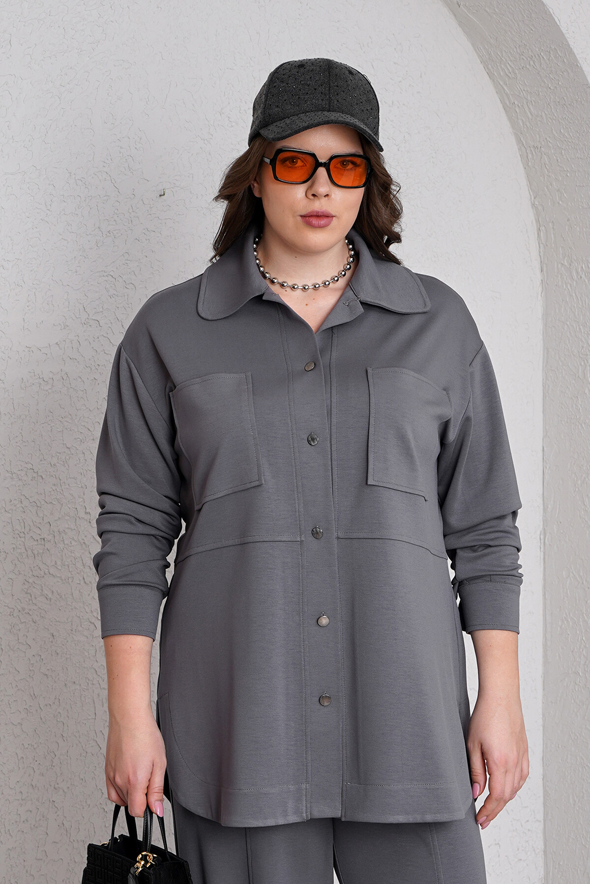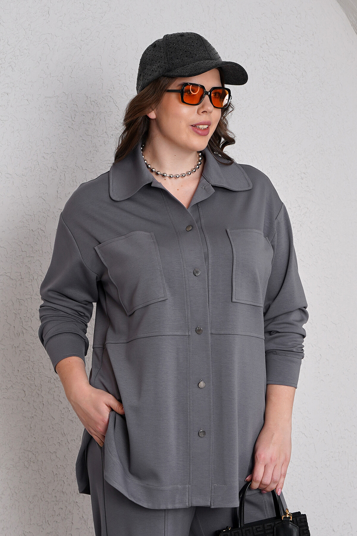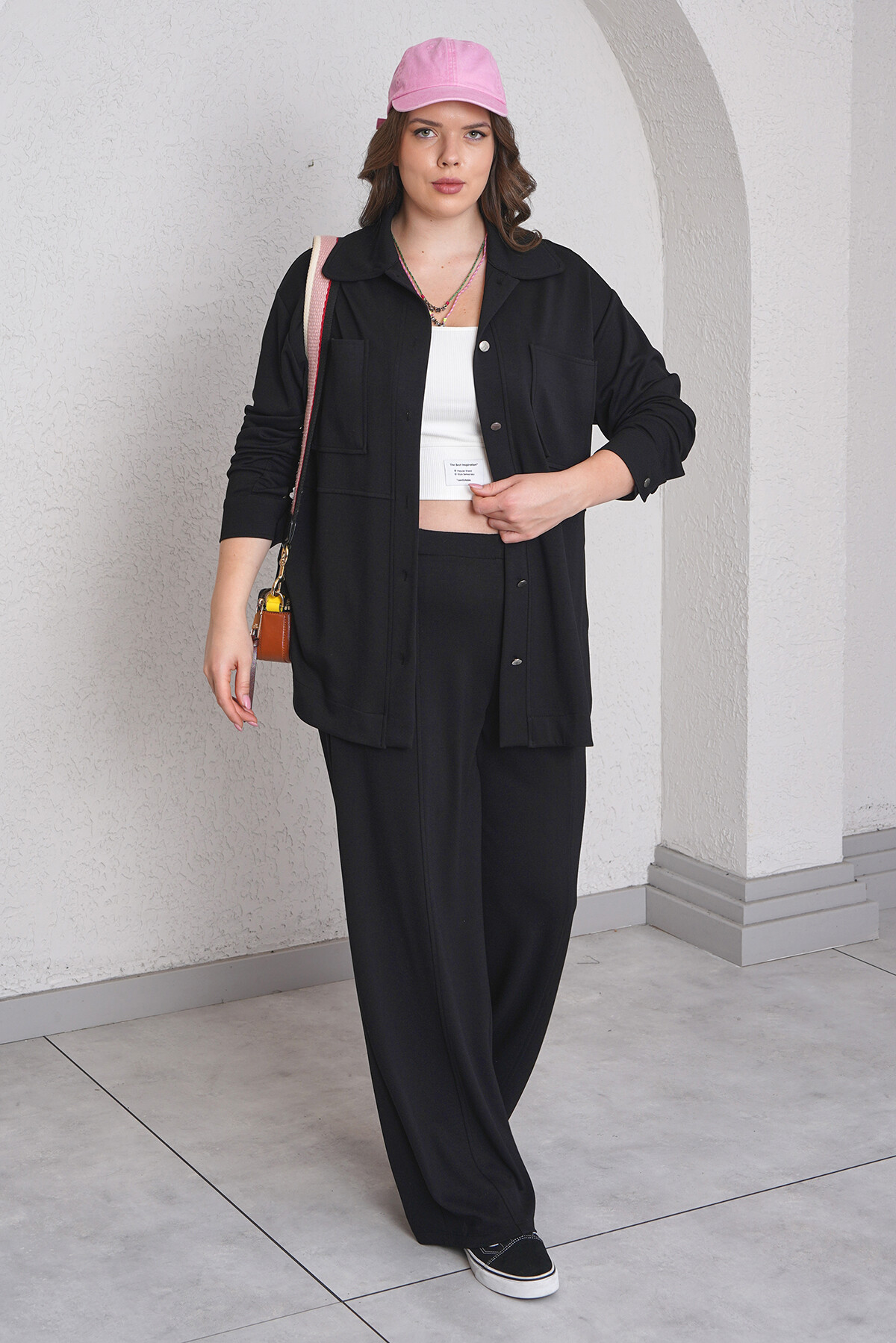 Büyük beden modal kumaştan, gömlek ve pantolon takım, set.