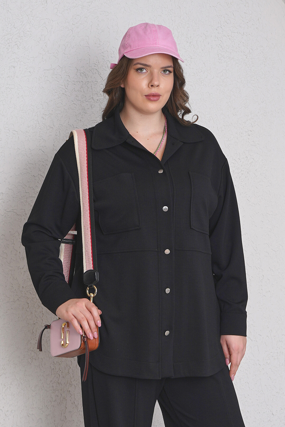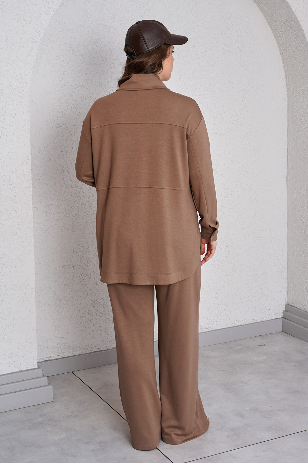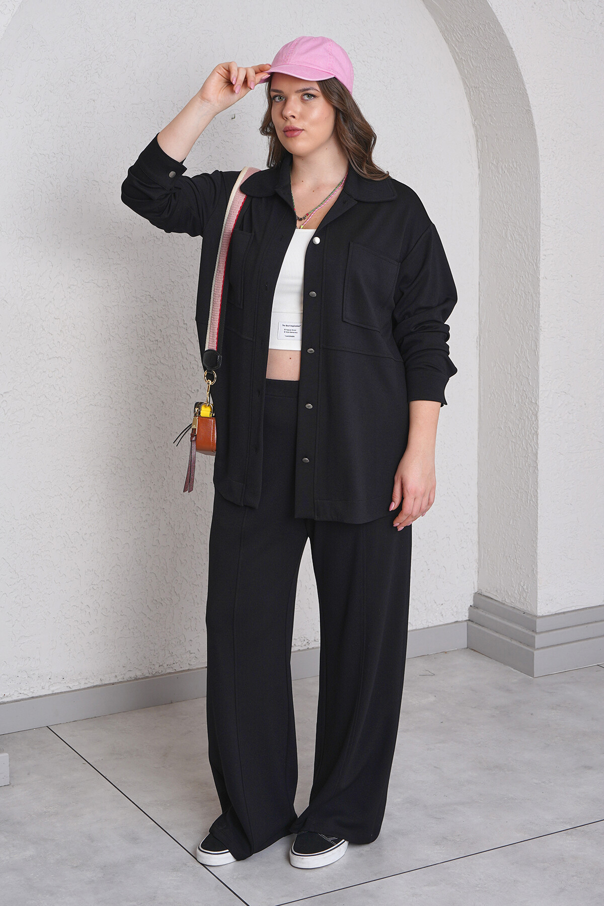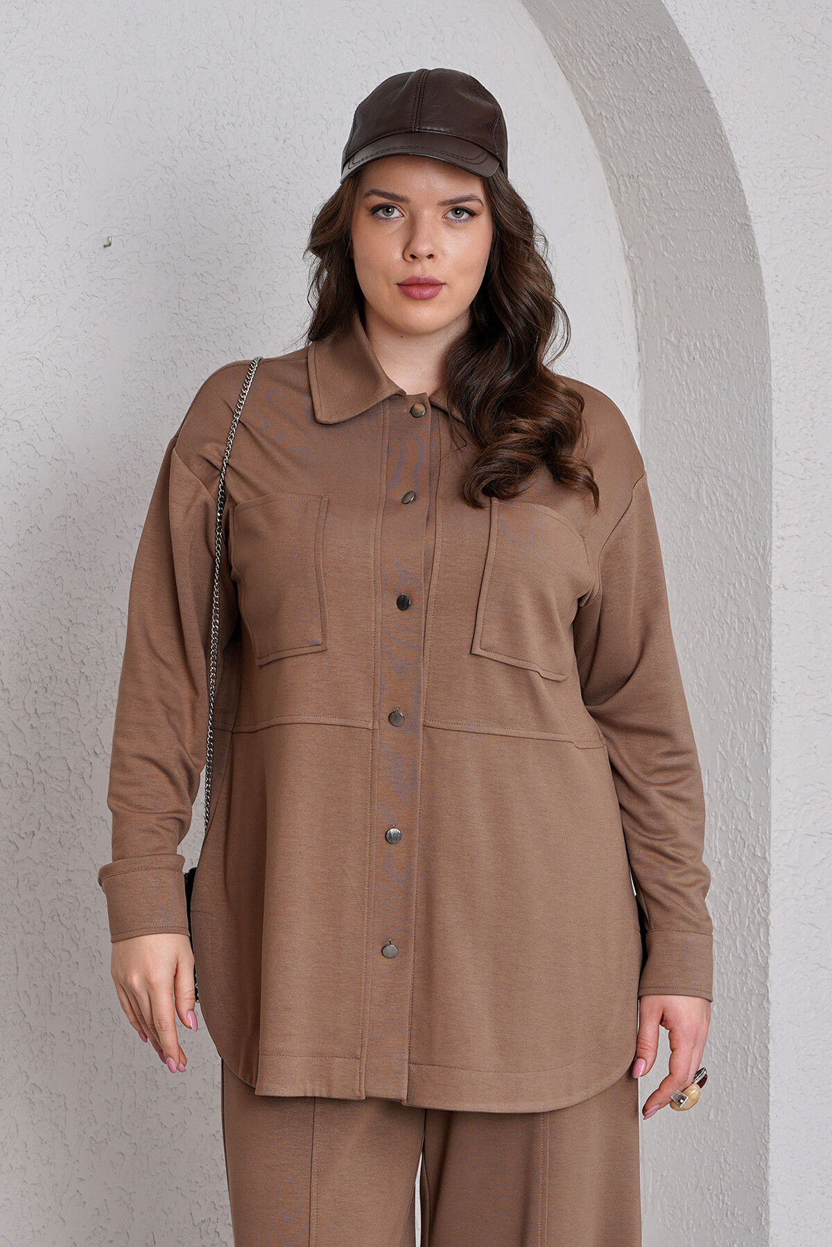 Büyük beden modal kumaştan, gömlek ve pantolon takım, set.