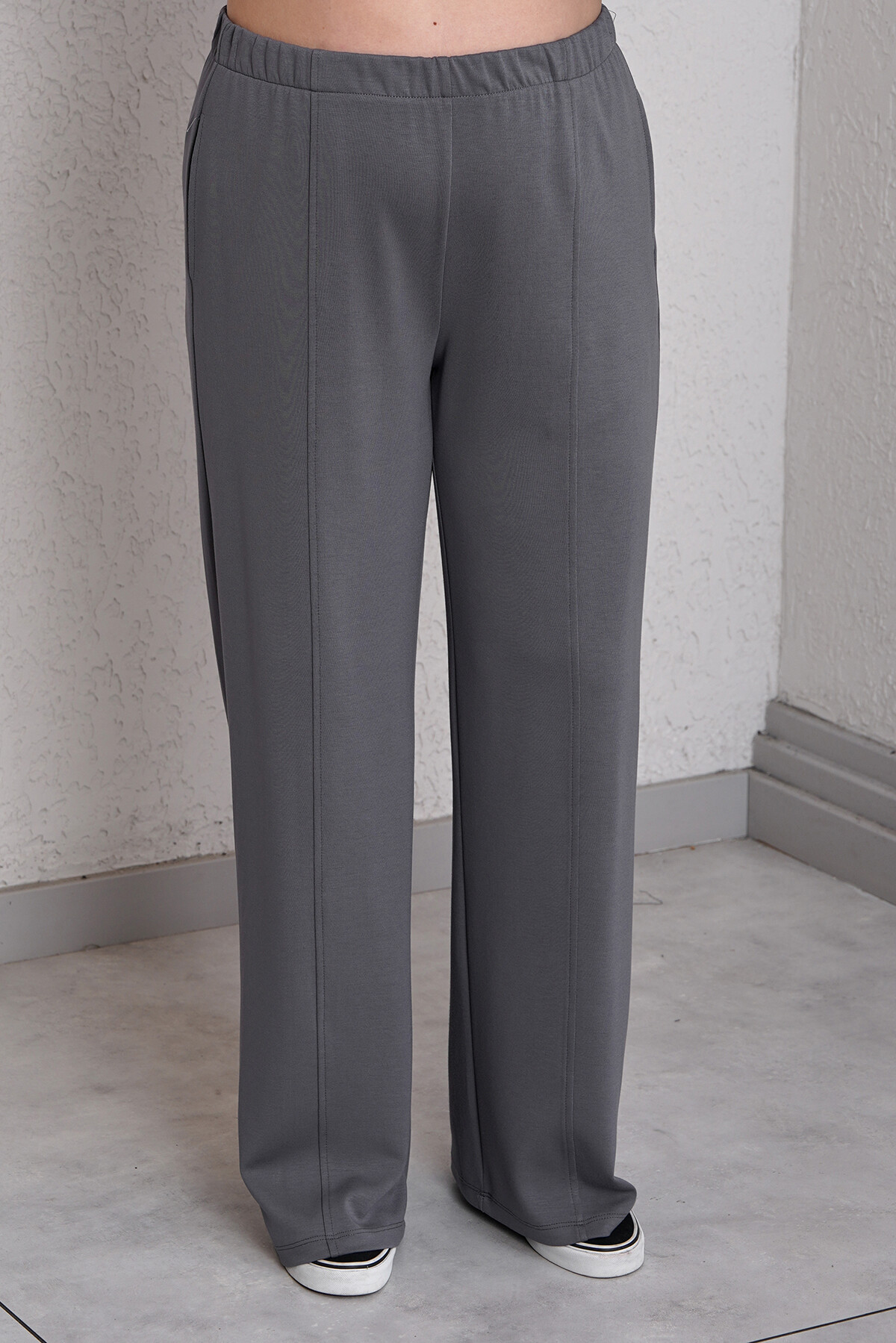 Görünür ön dikişli, yan dikişten cepli, elastik belli, düz kesimdir.