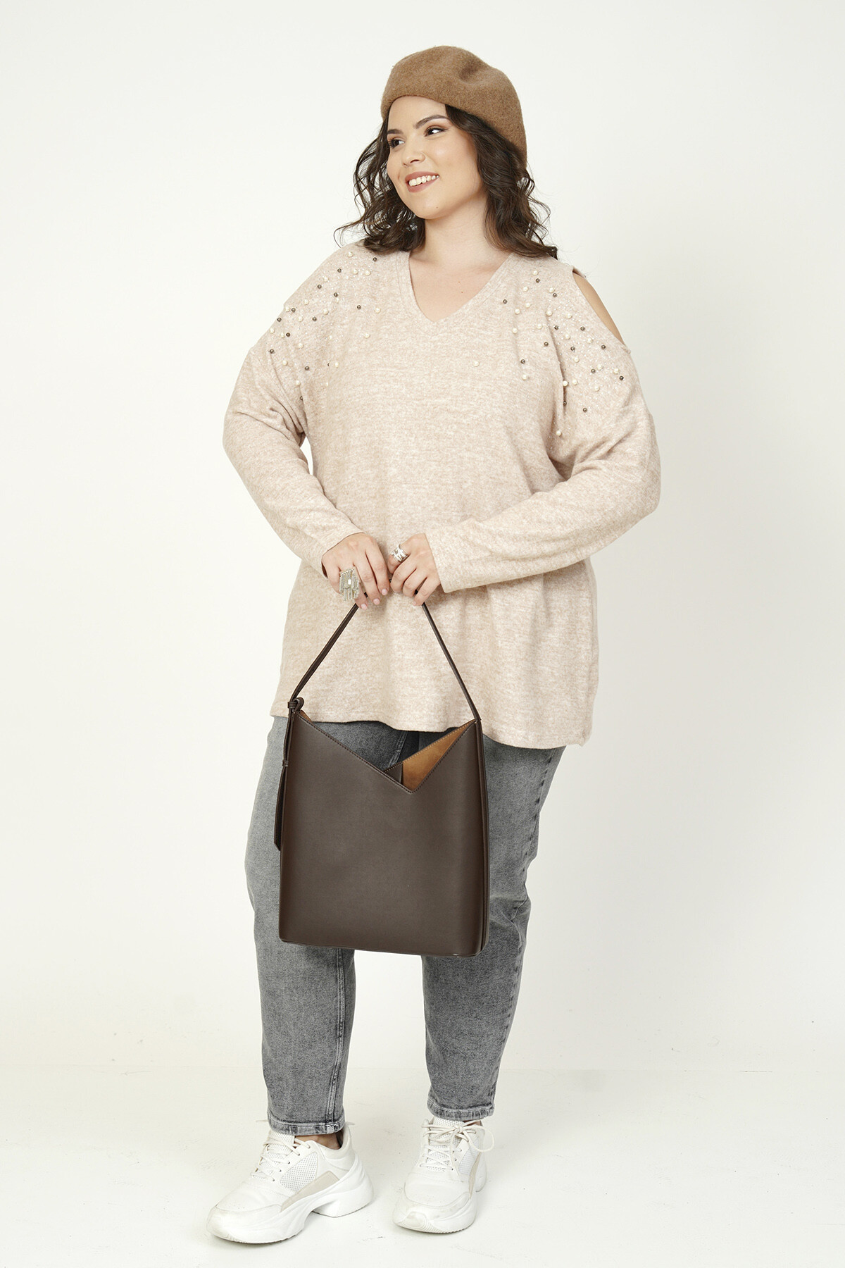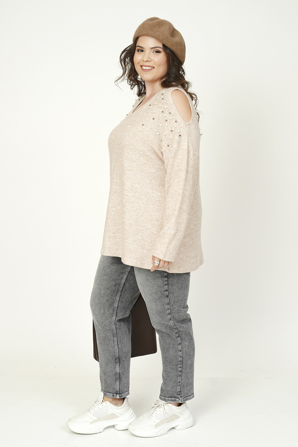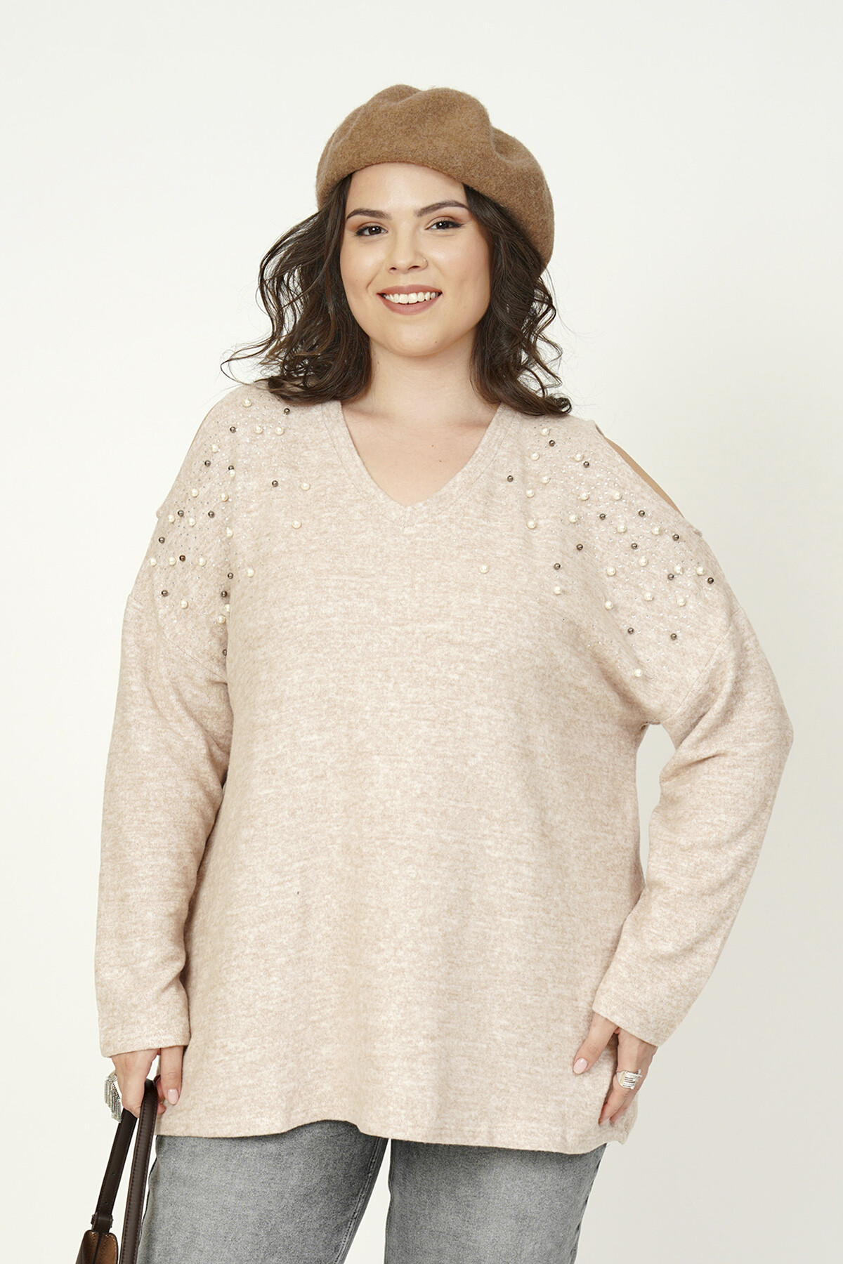 İNCİ VE TAŞ DETAYLI TRİKO KAZAK