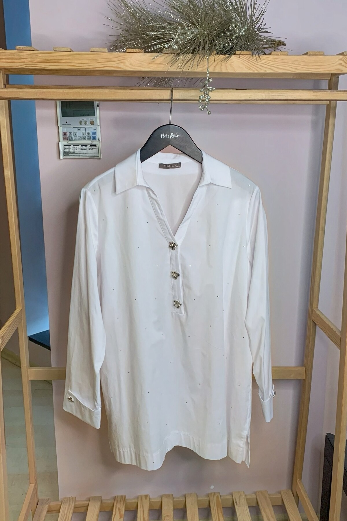 KALP AKSESUAR DÜĞMELİ LİKRALI POPLİN BLUZ