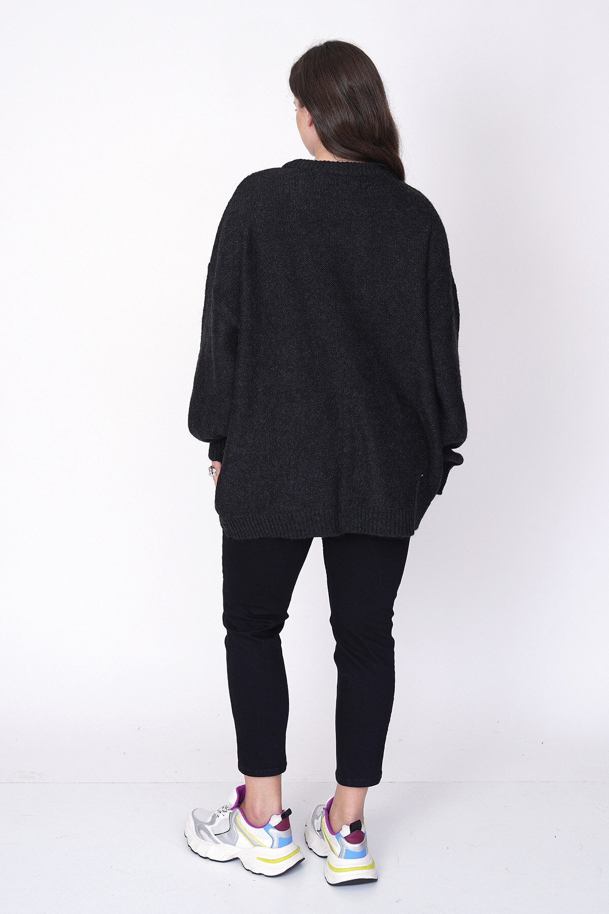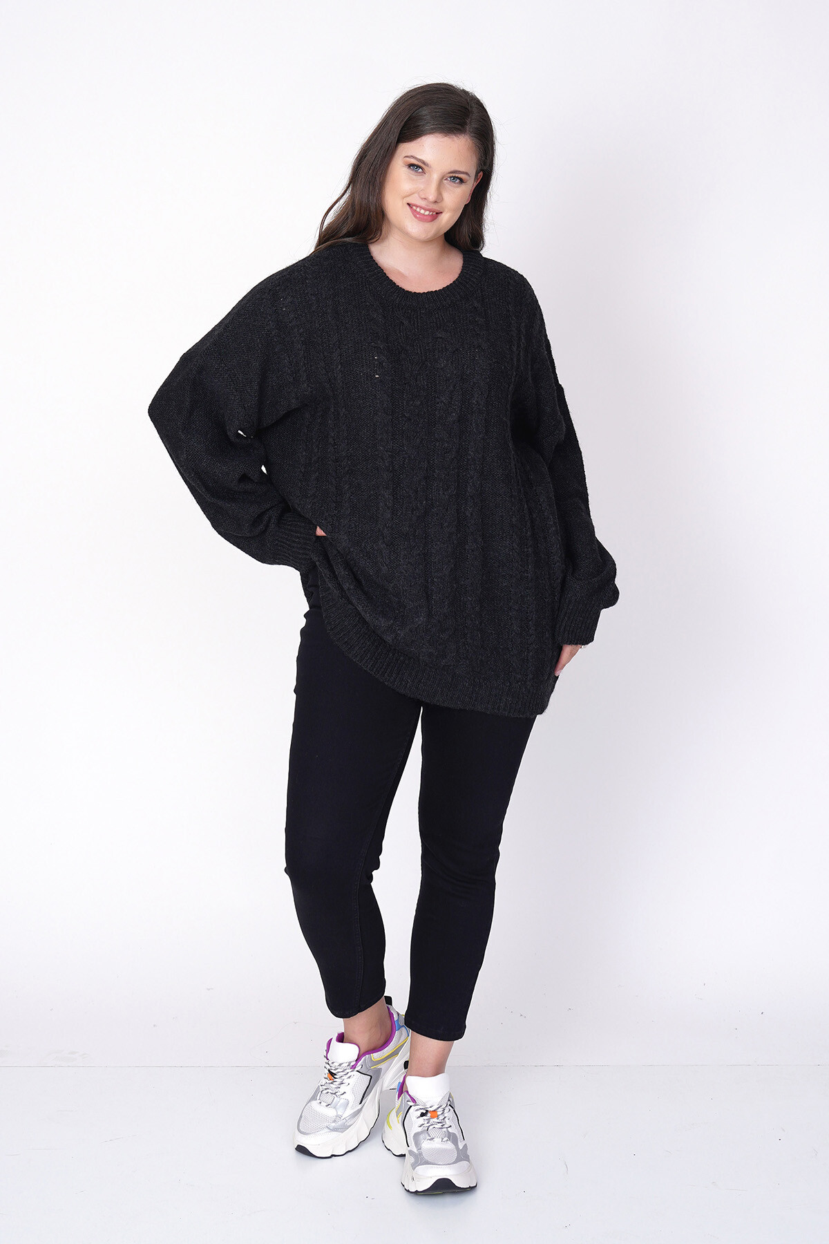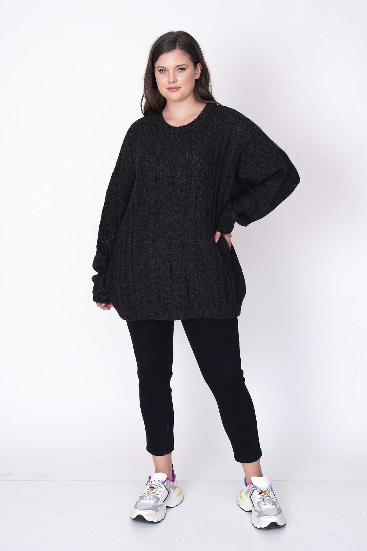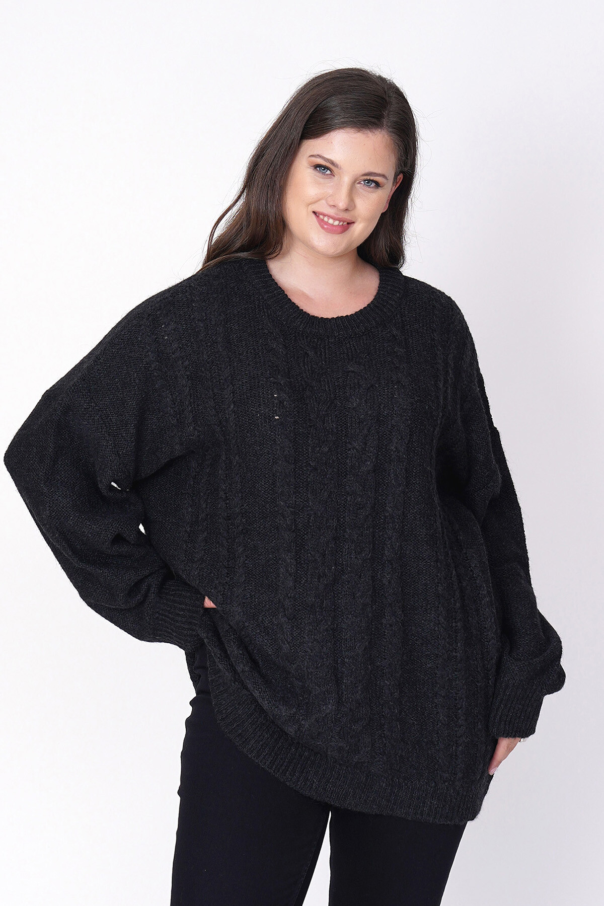 Plus size crew neck, long sleeve, knitted pattern, oversized sweater.