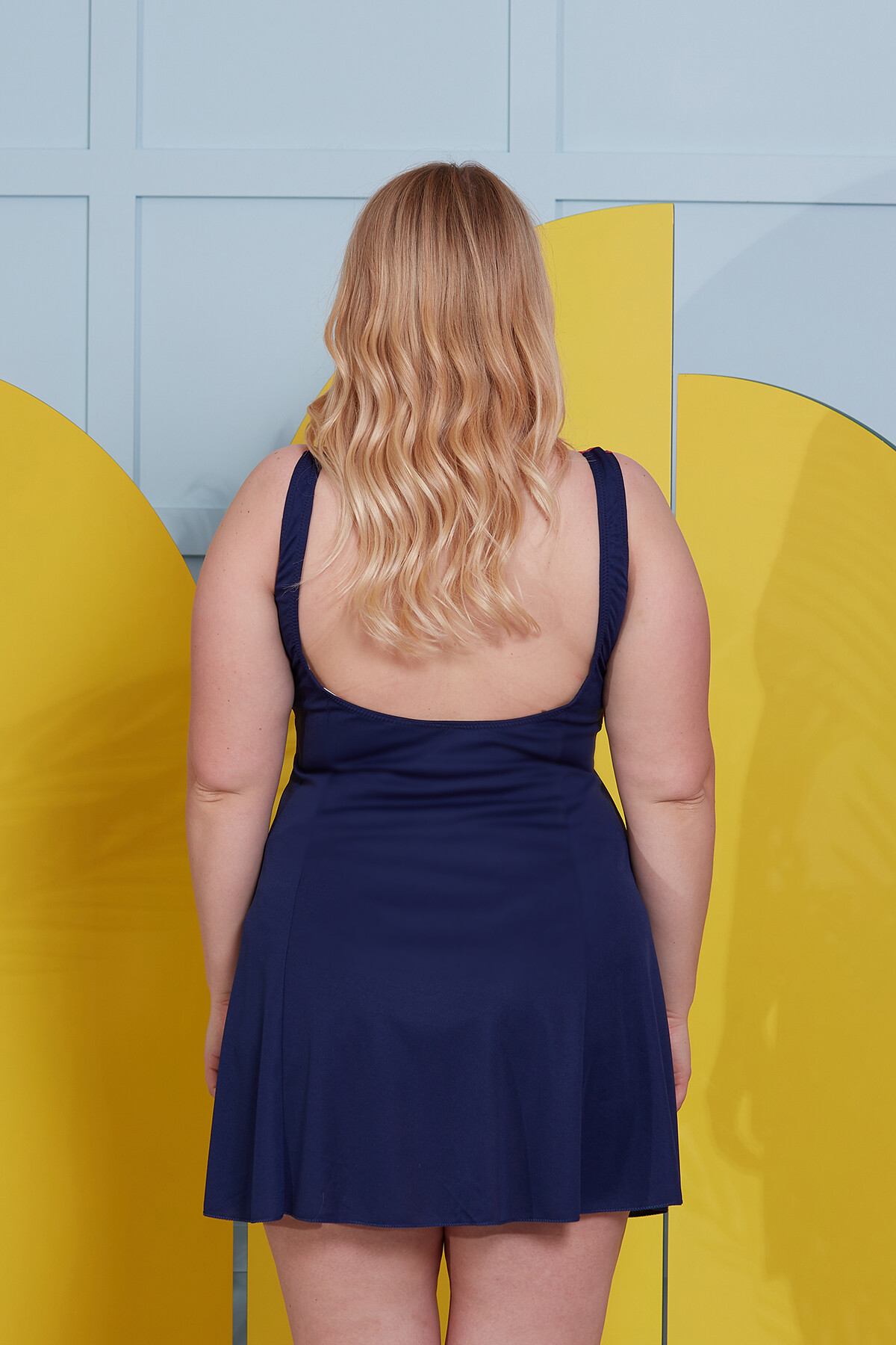 Büyük beden 2 renkli, biye detaylı elbise mayo.