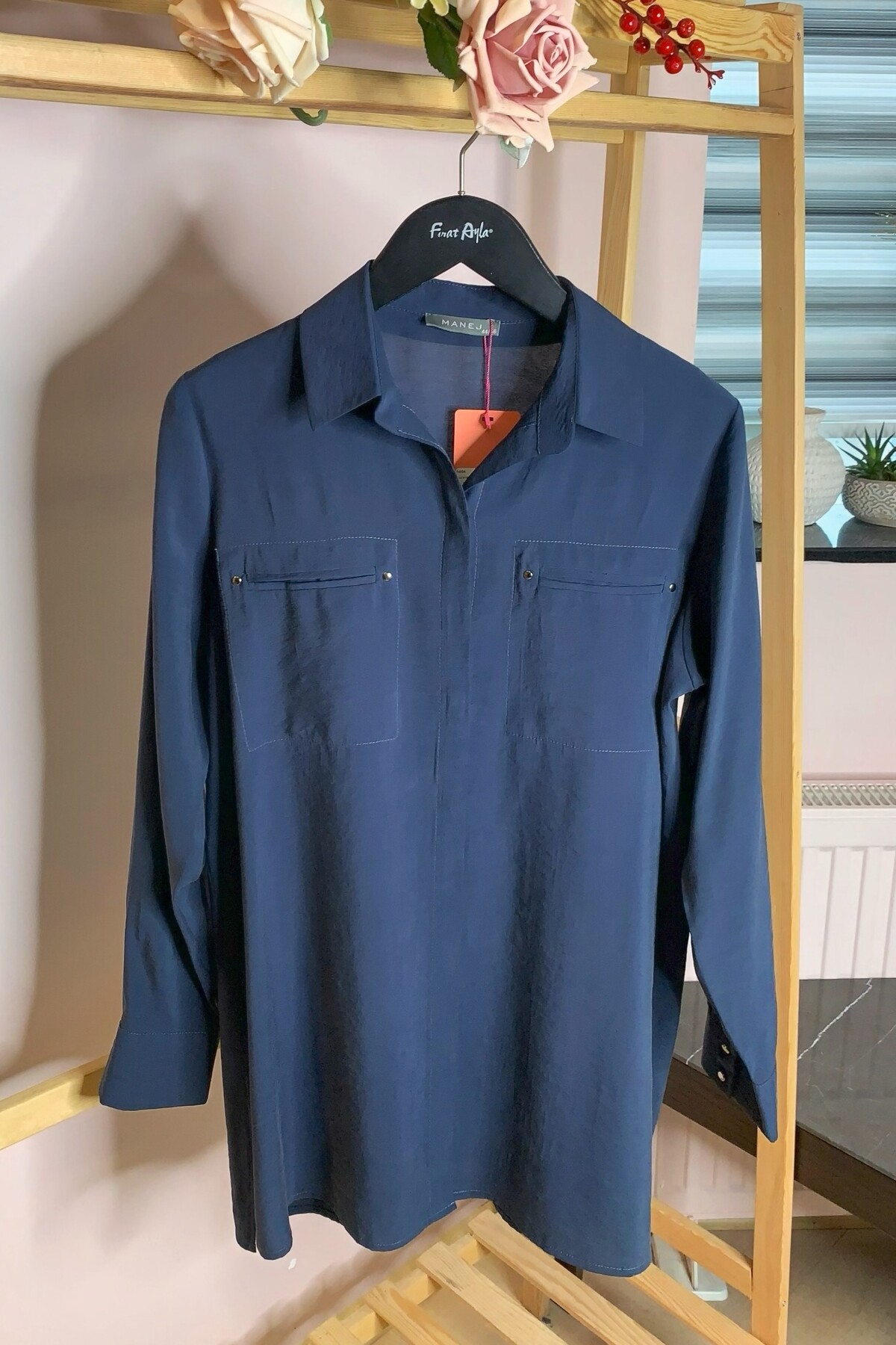 Büyük beden modal kumaştan, yakalı gömlek.