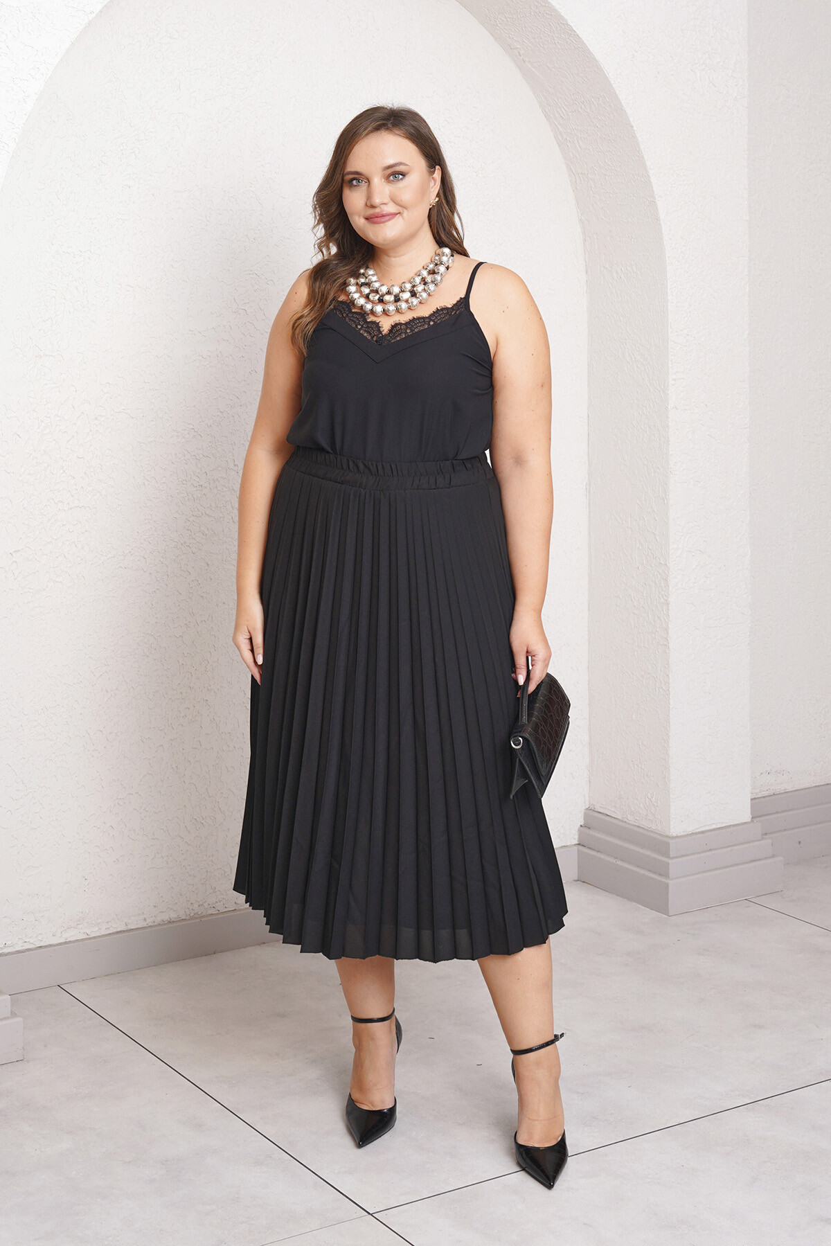 Büyük beden yüksek bel, beli lastikli plise etek.