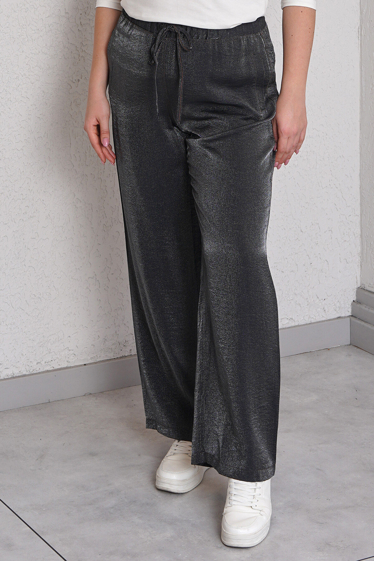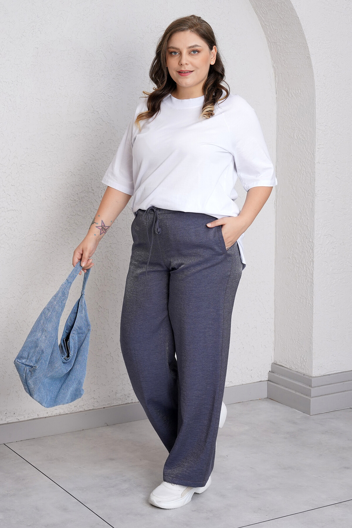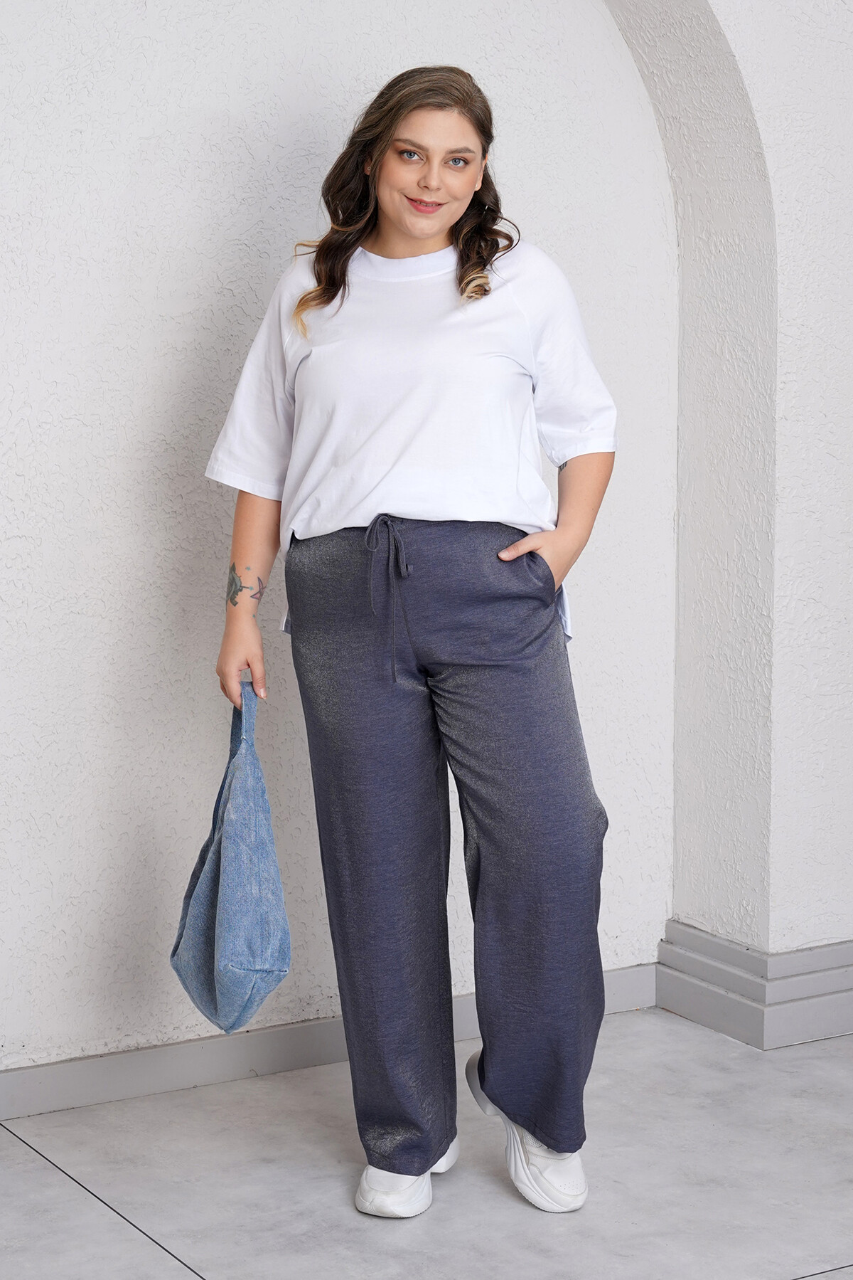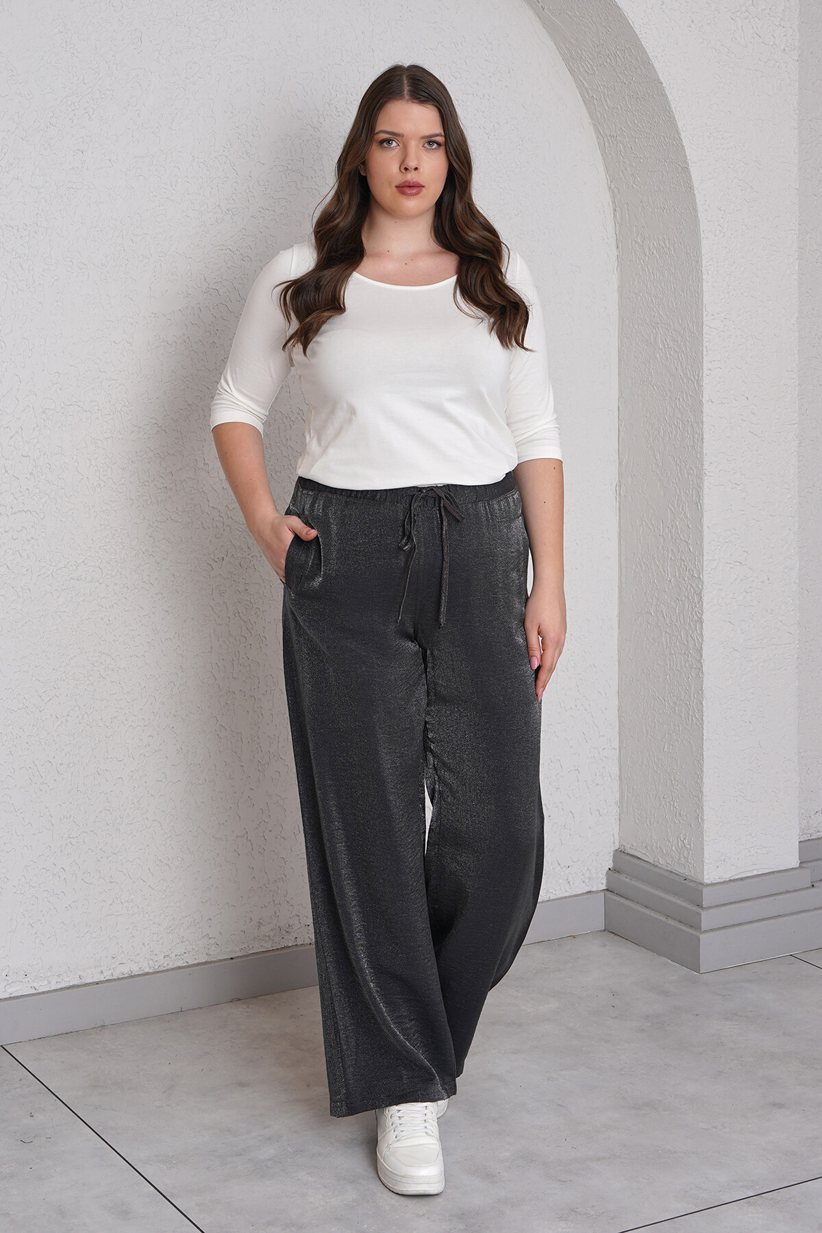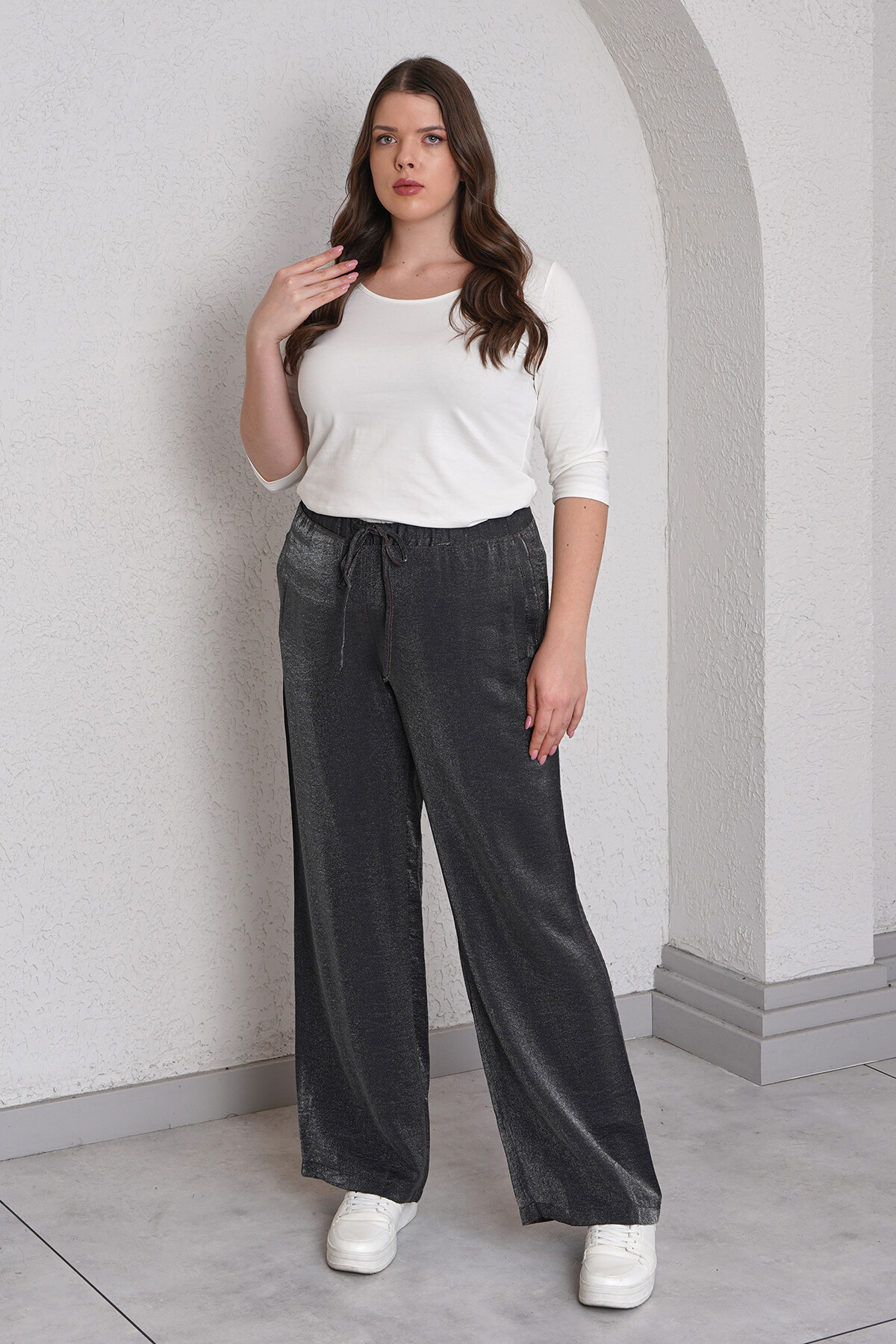 Büyük beden simli tensel kumaştan, düz kesim pantolon.