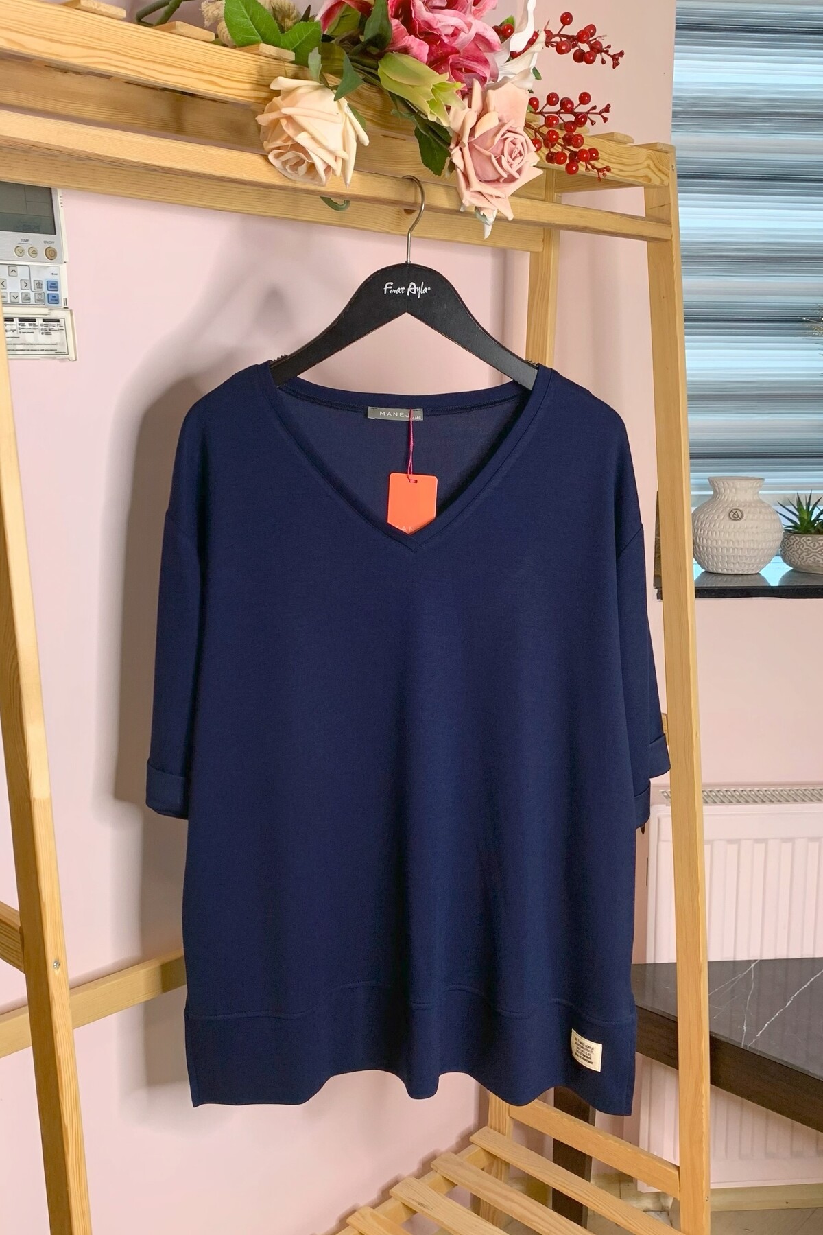 Büyük beden V-yaka, basic, yanlardan yırtmaçlı modal tişört.