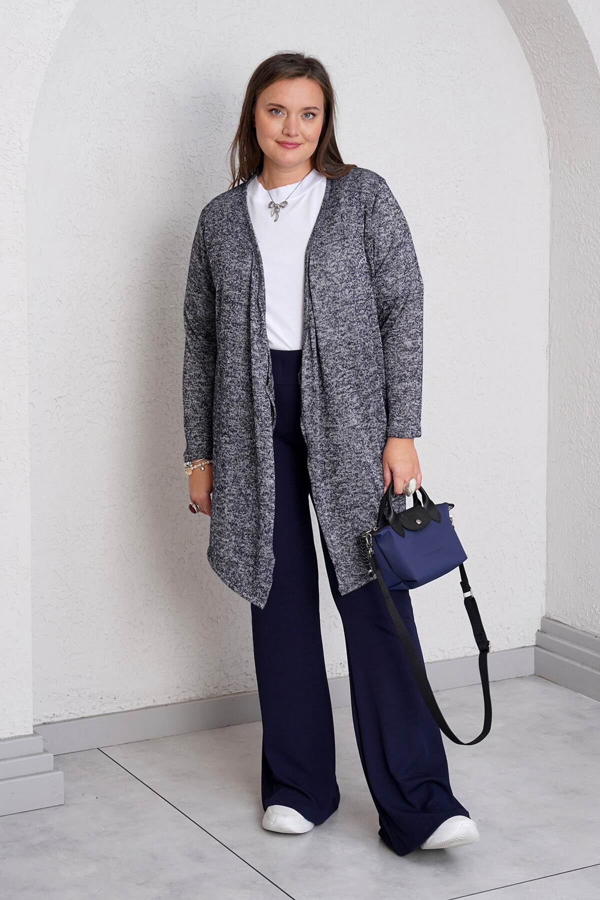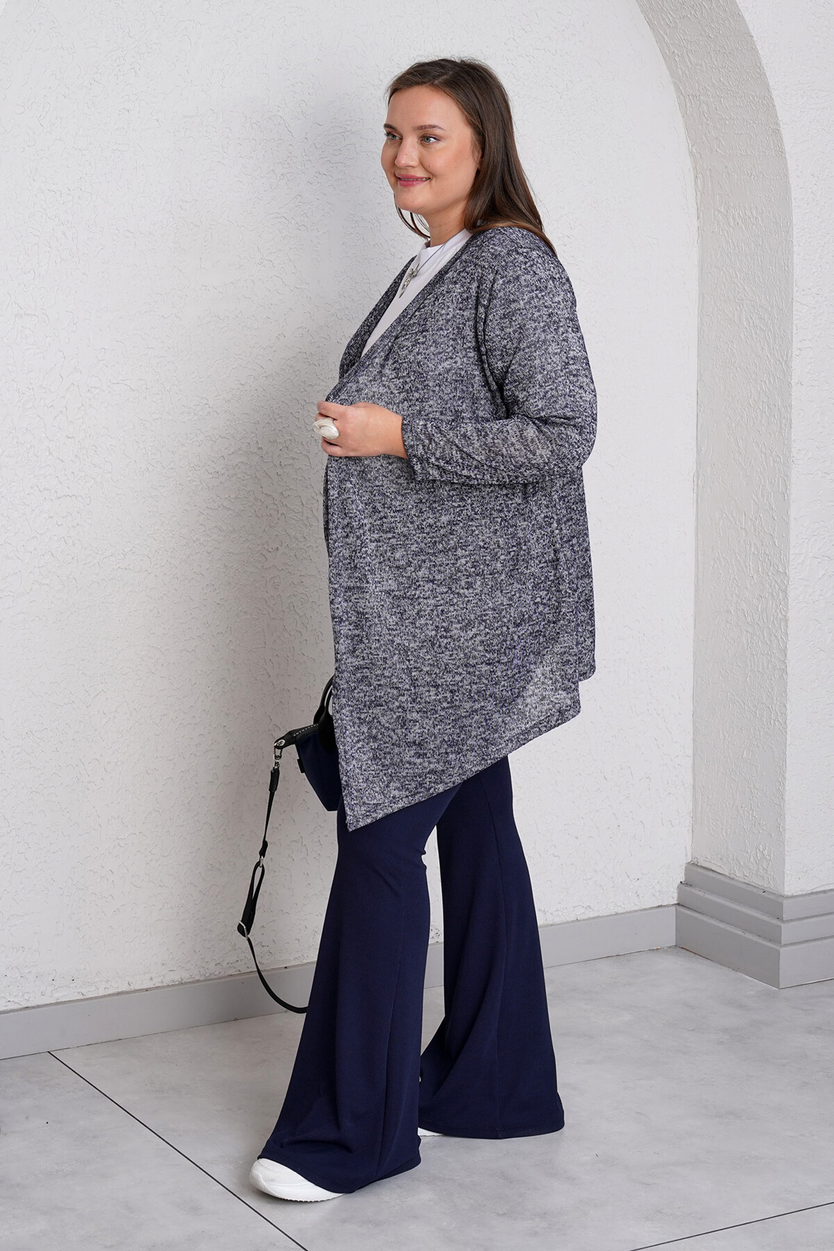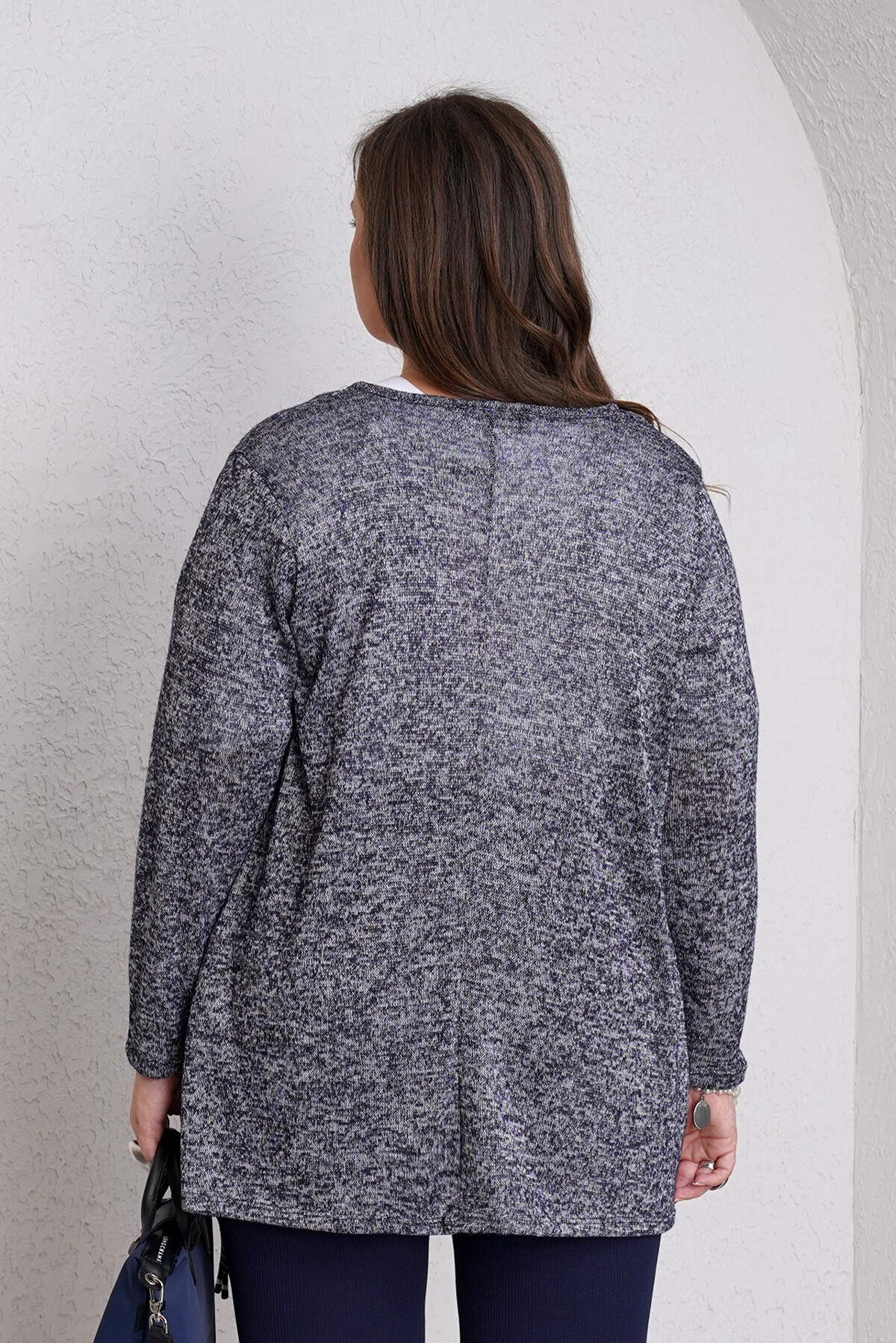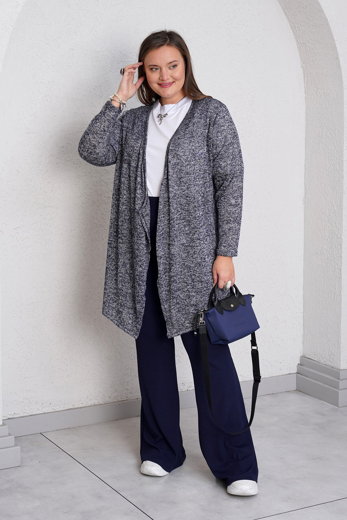 Büyük beden yumuşak dokulu örme triko kumaştan, hırka.
